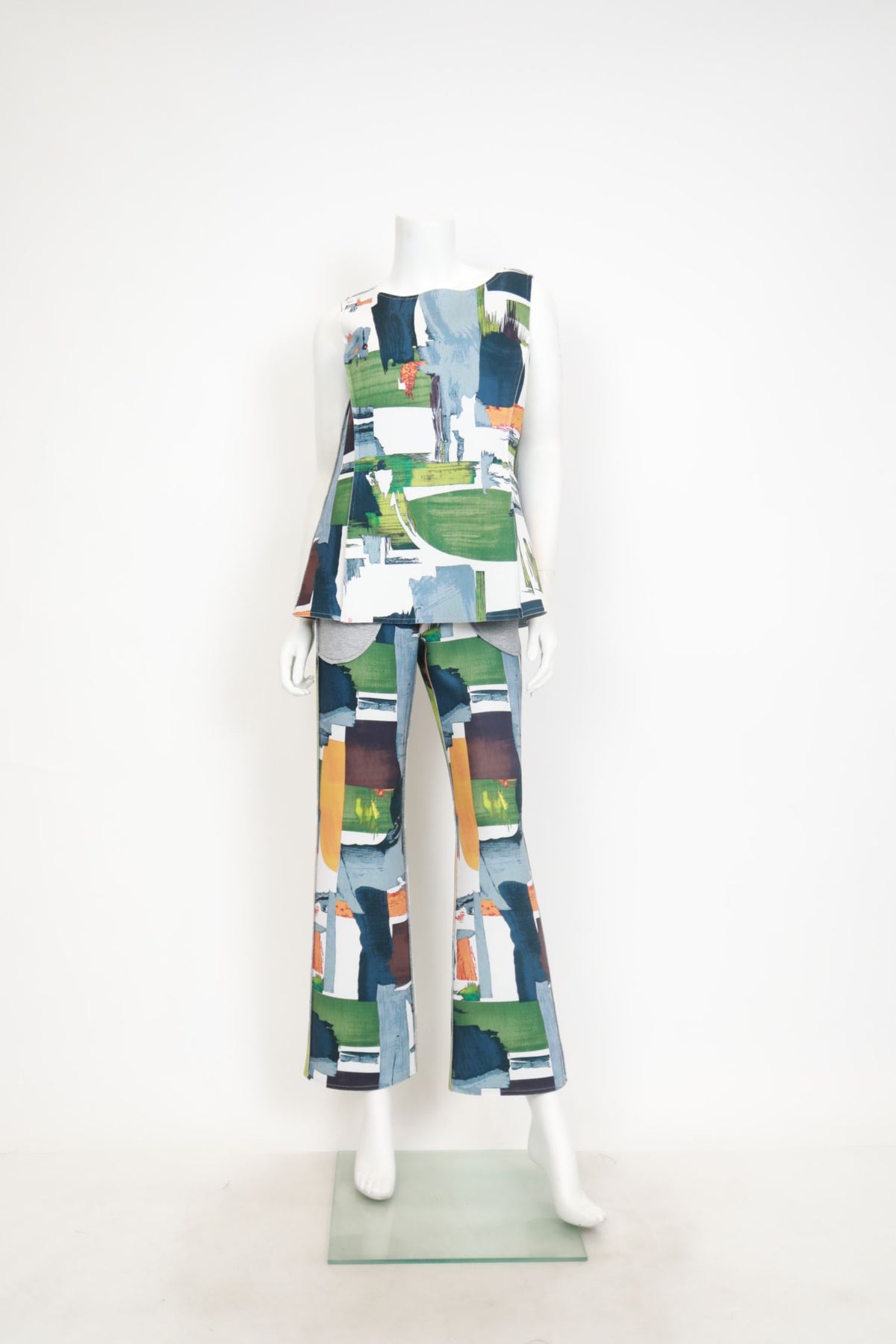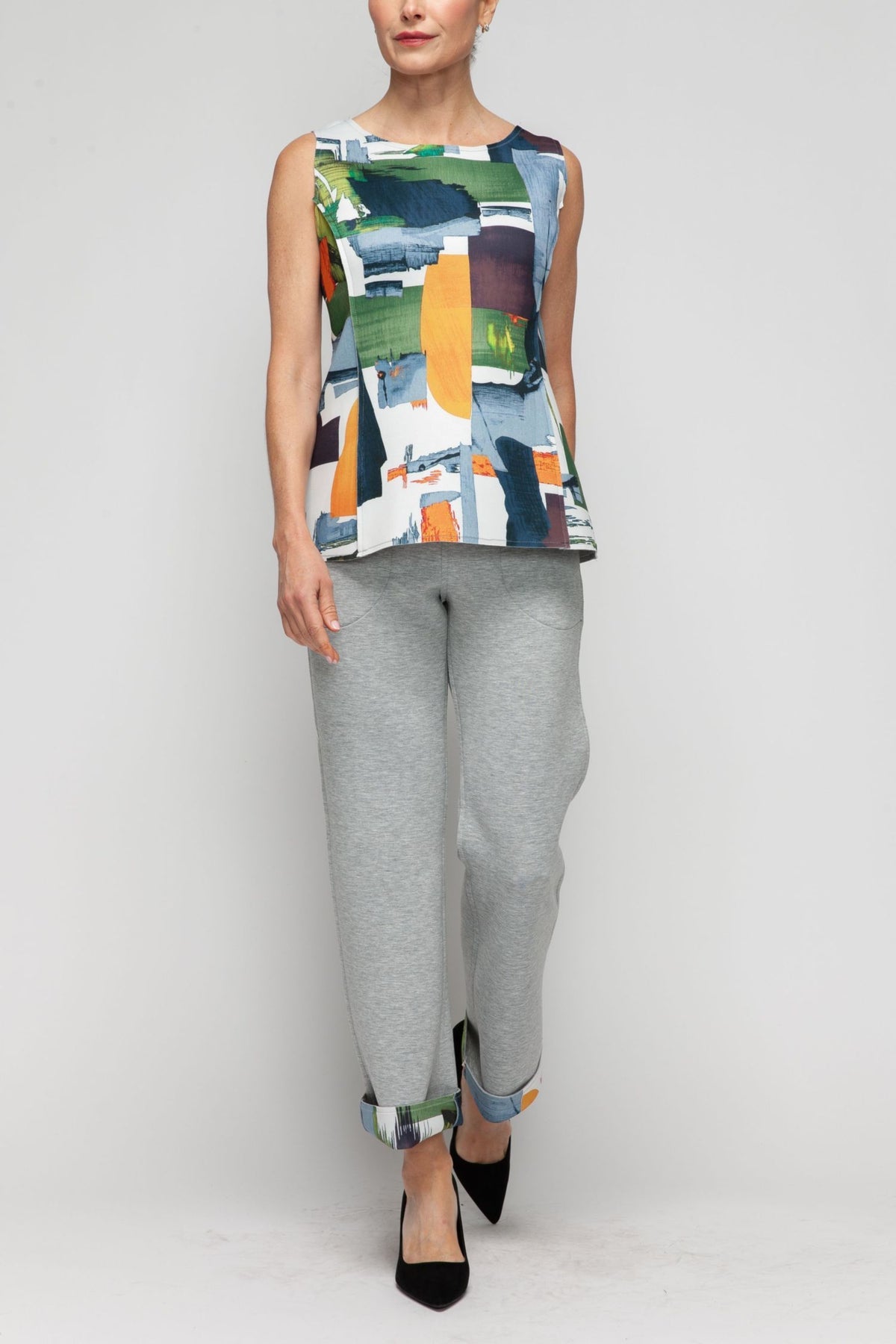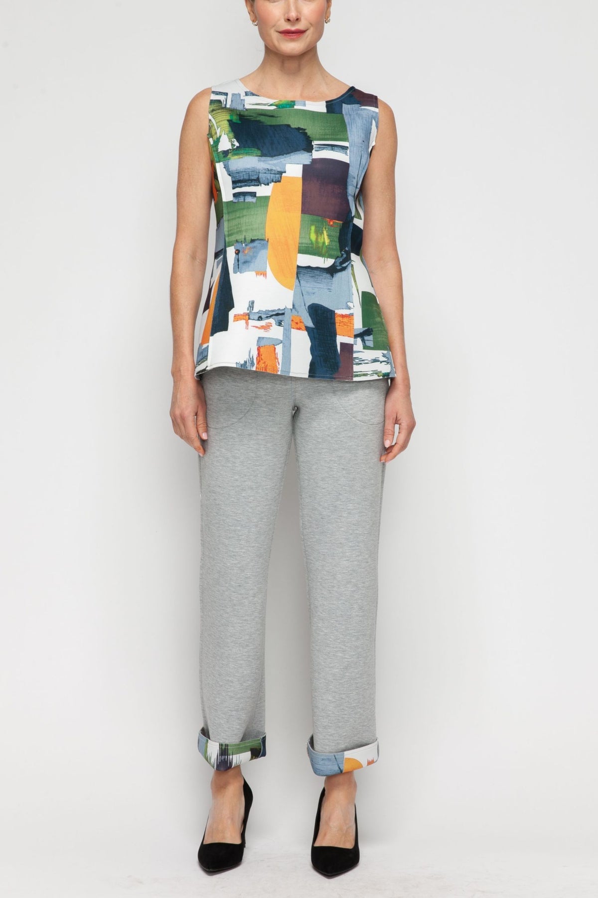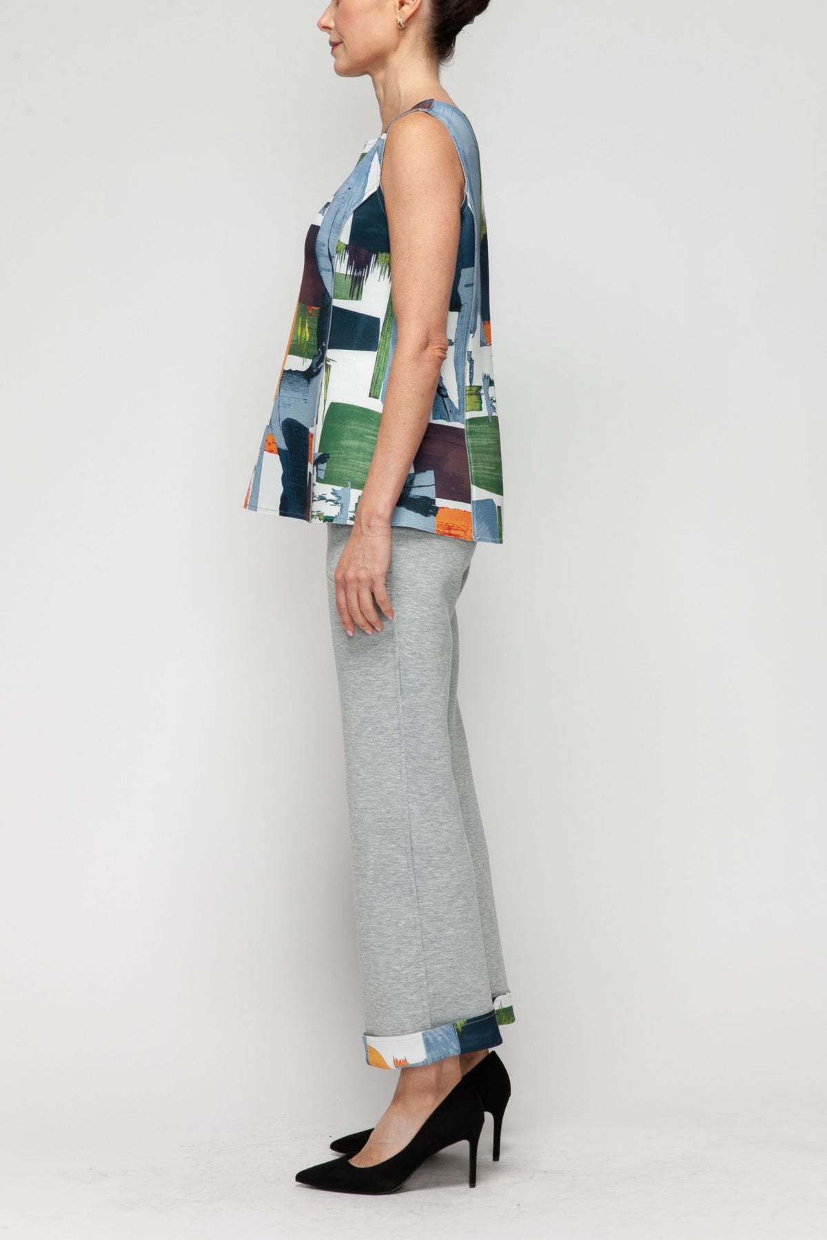 CUT EDGE CONTRAST TOP STITCH SLEEVELESS TOP
