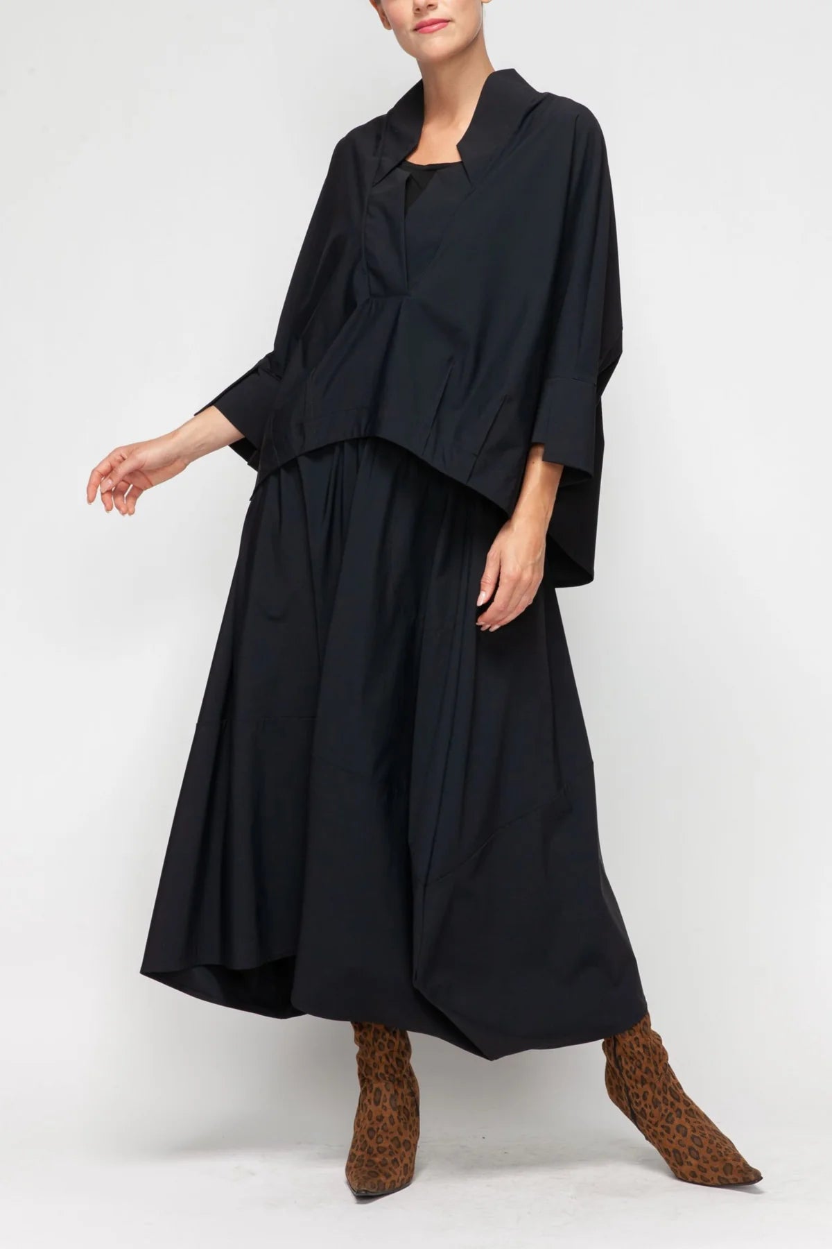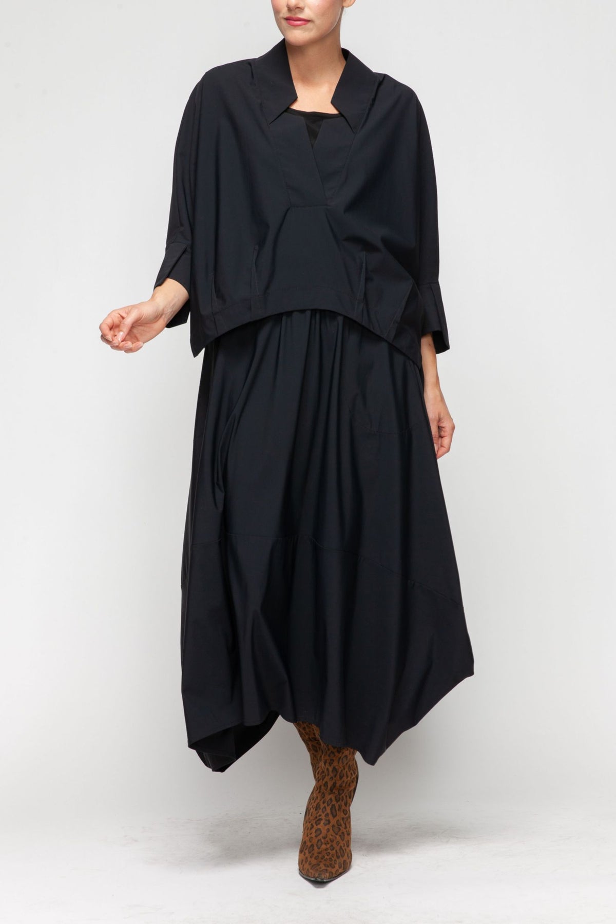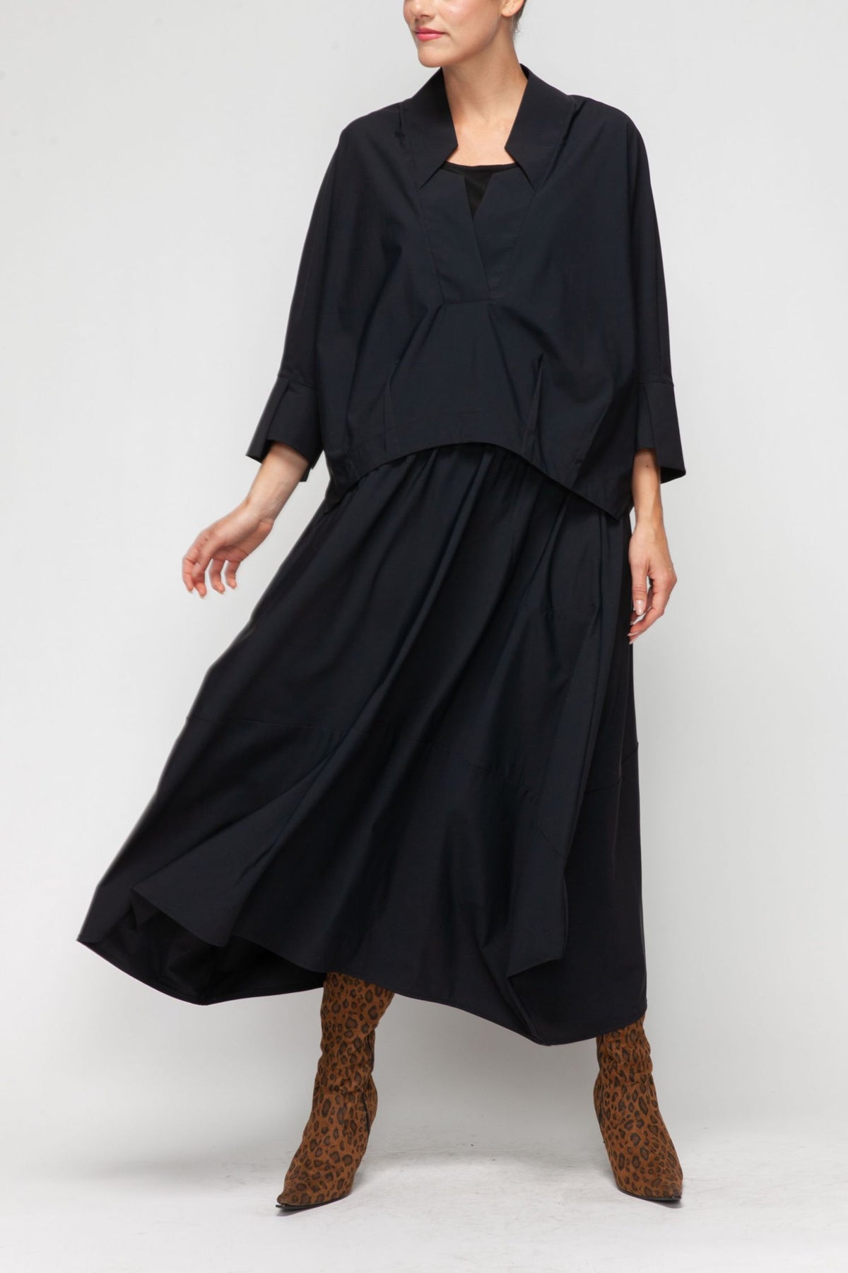 V-NECK COLLAR FRONT PLEATS BOXY TOP
