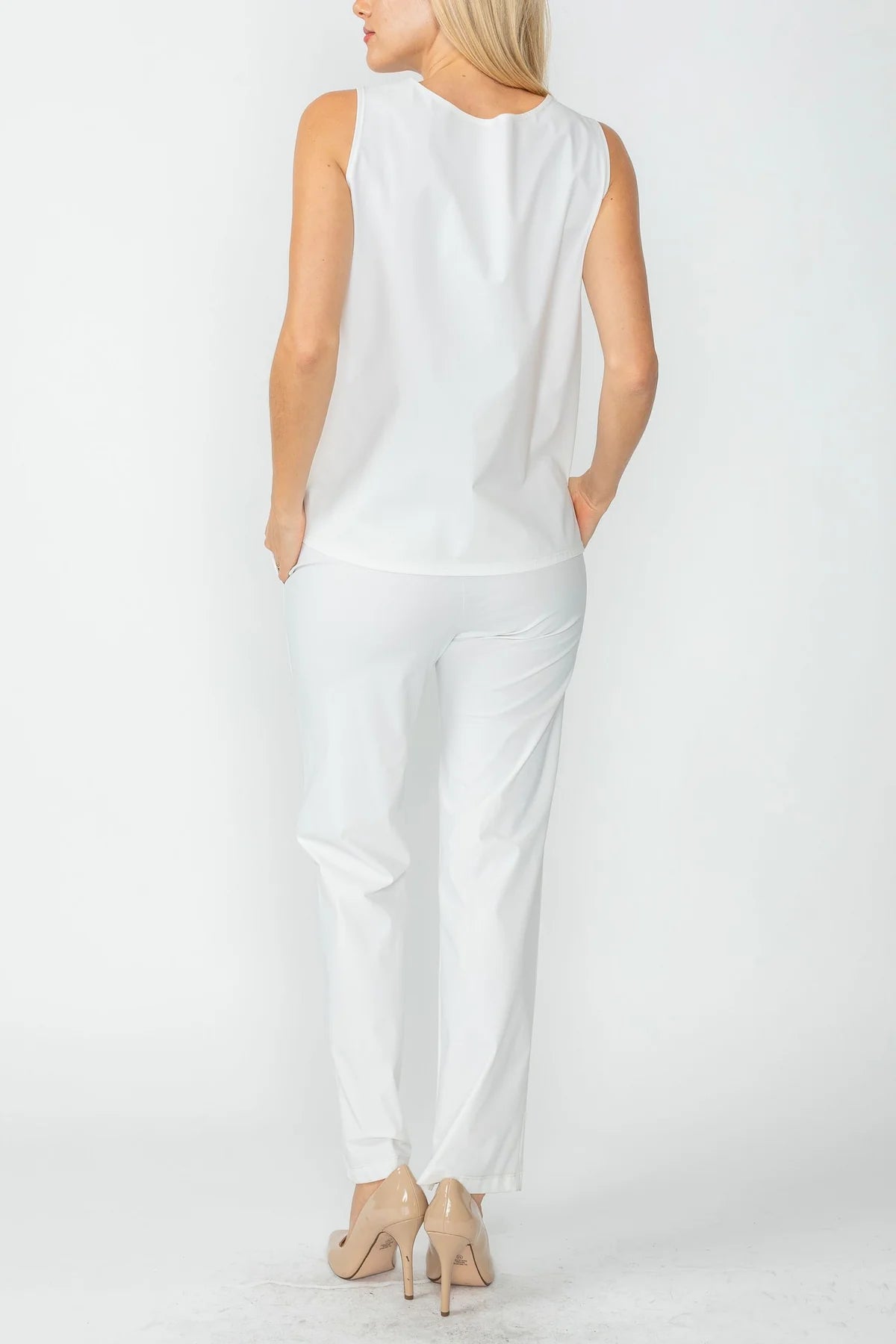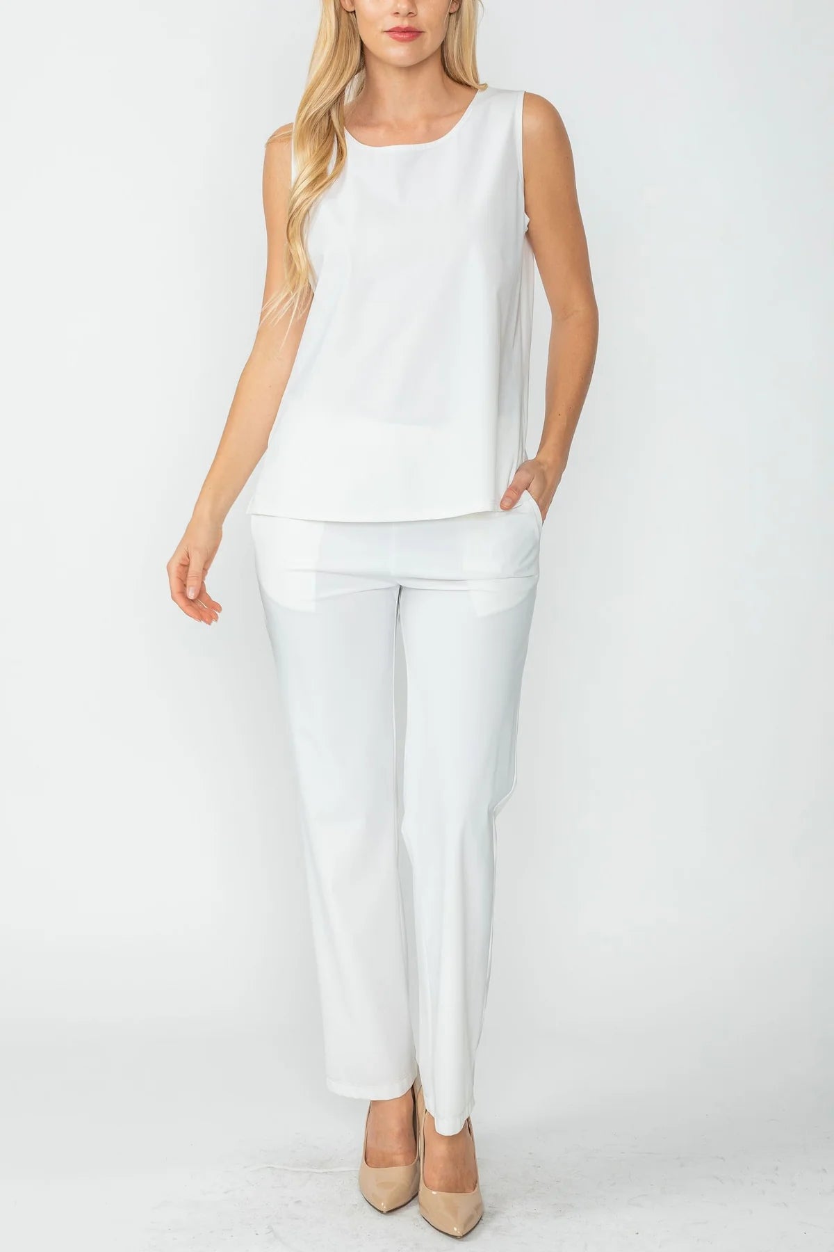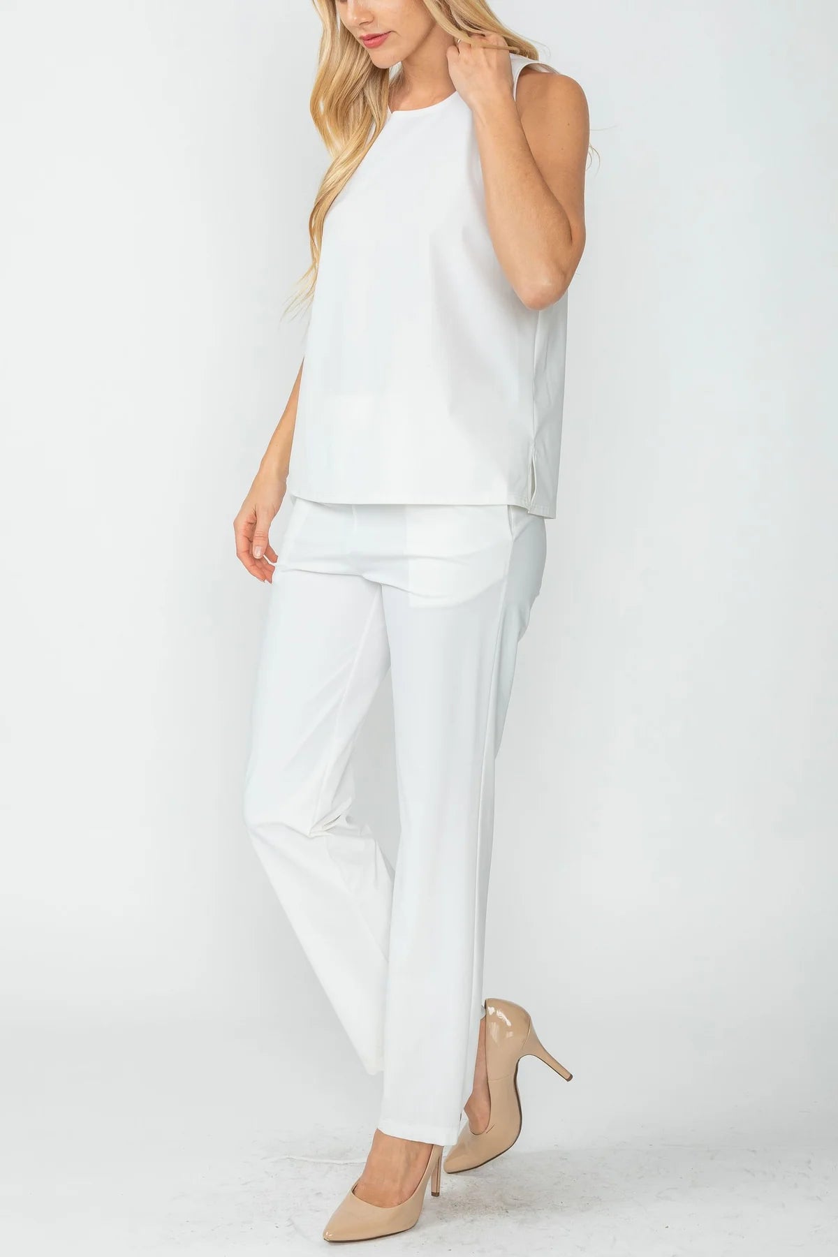 ROUND SLEEVELESS TOP & STRAIGHT PANTS