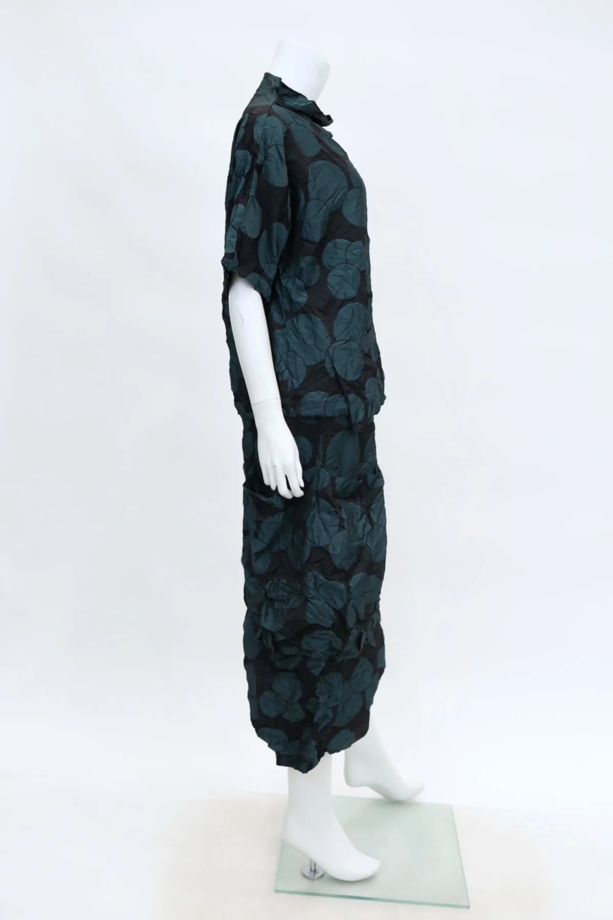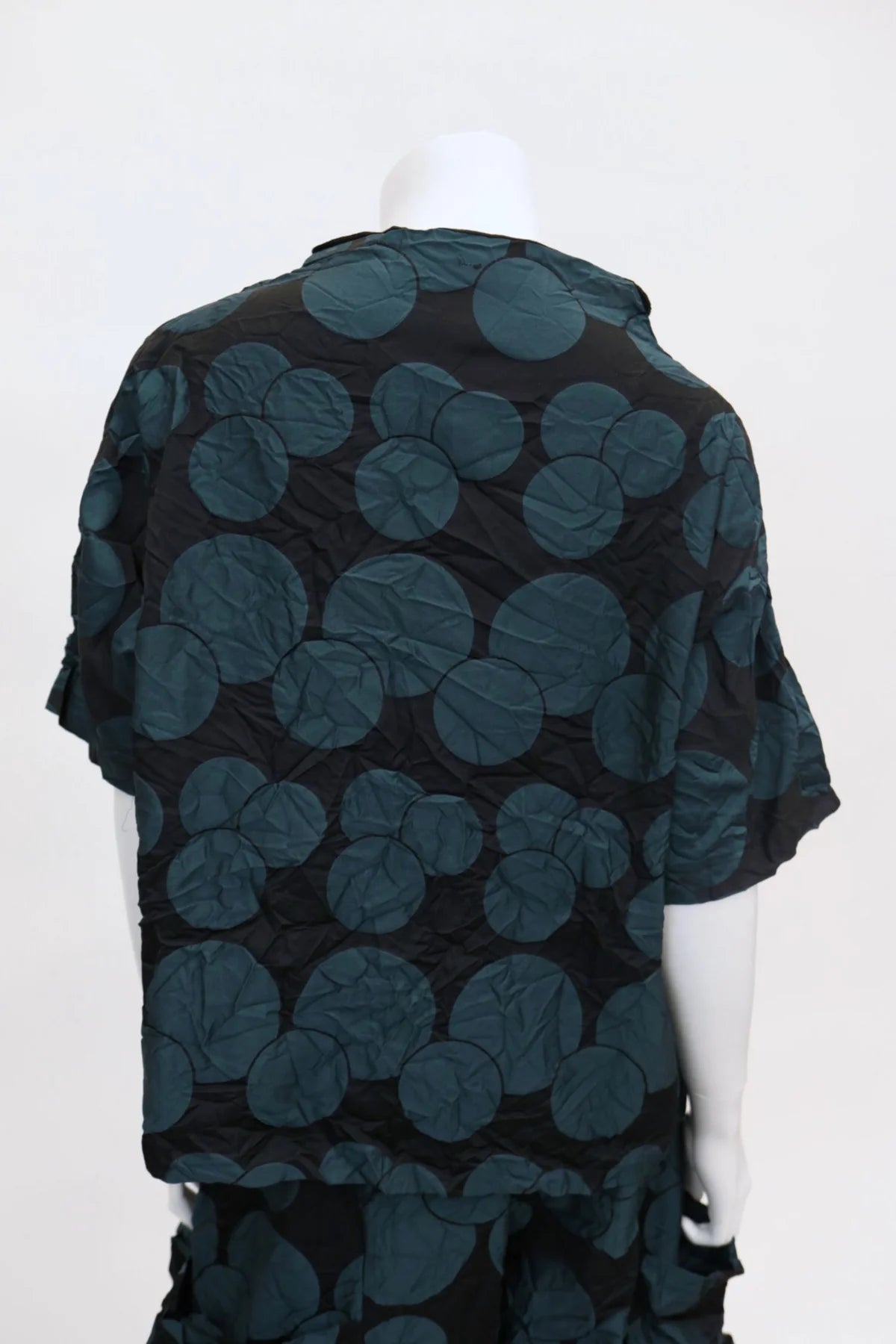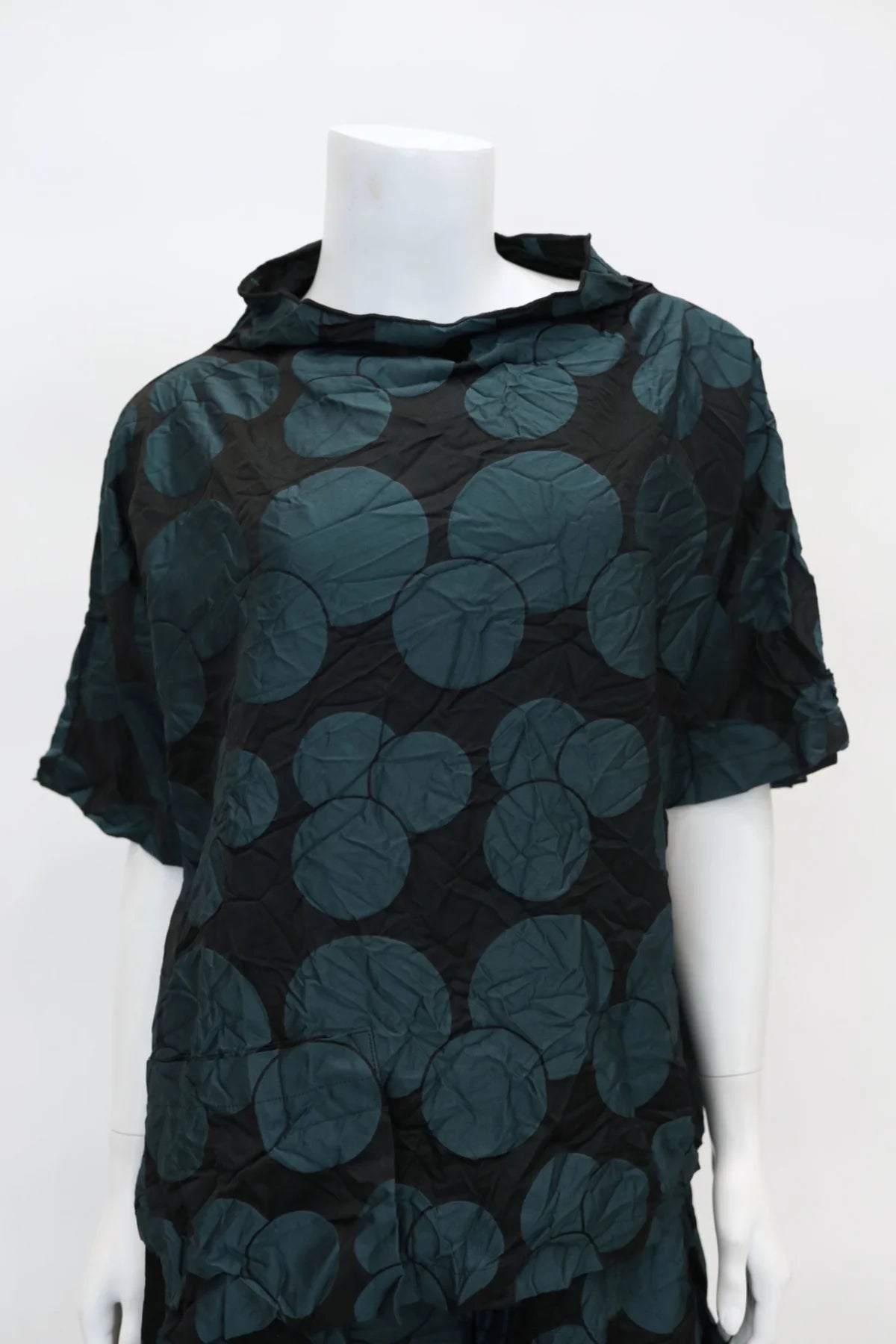 CRINKLE JACQUARD ELBOW LENGTH SLEEVE PULL TOP