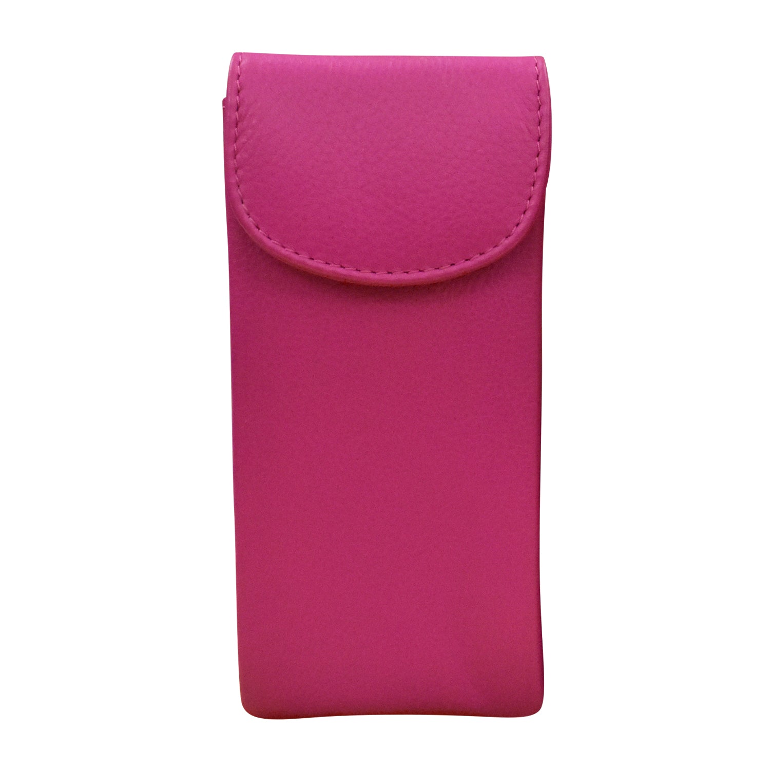 Flap closure with snap button. Holds two pairs of eyeglasses.