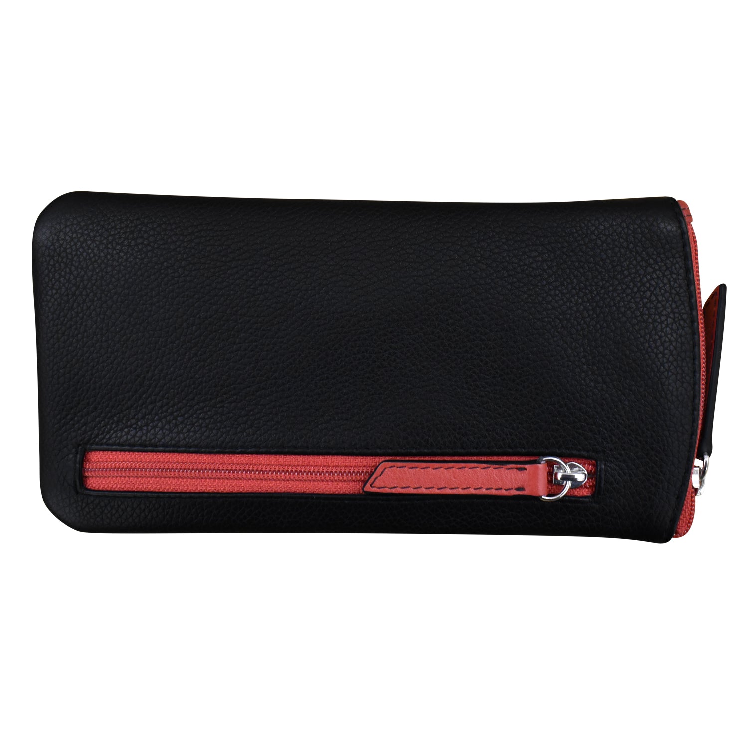 Zip closure and back zip pocket.