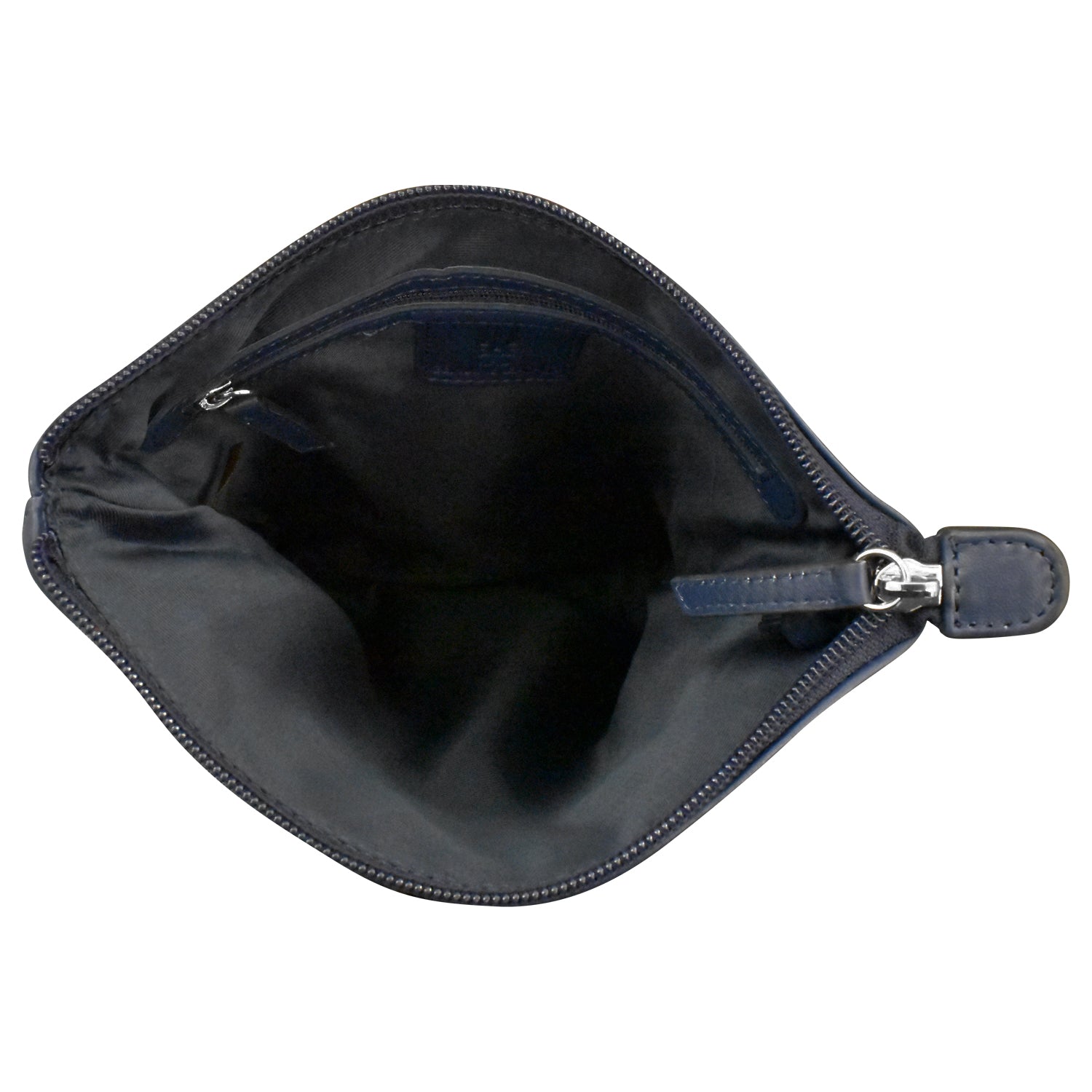 Front slip pocket and back zip pocket. Inside zip pocket.