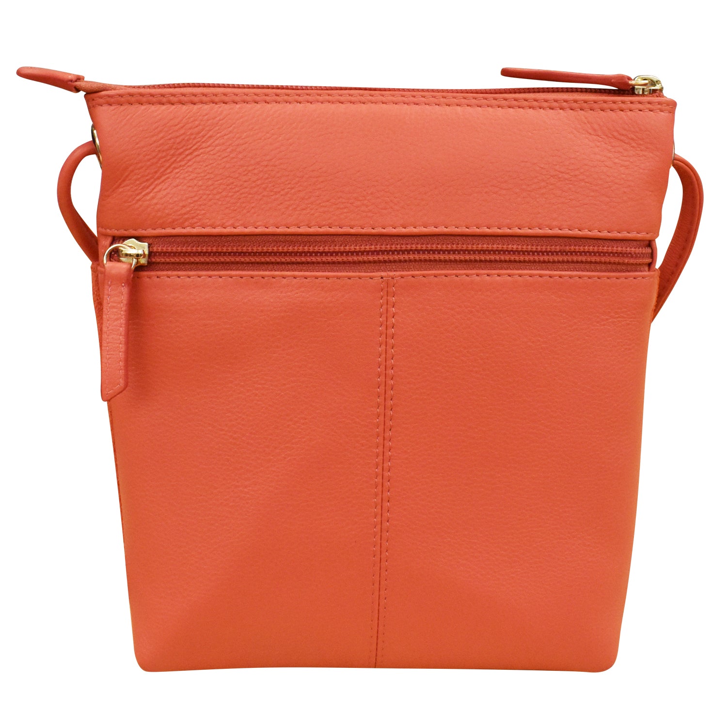 Front slip pocket and back zip pocket. Inside zip pocket.