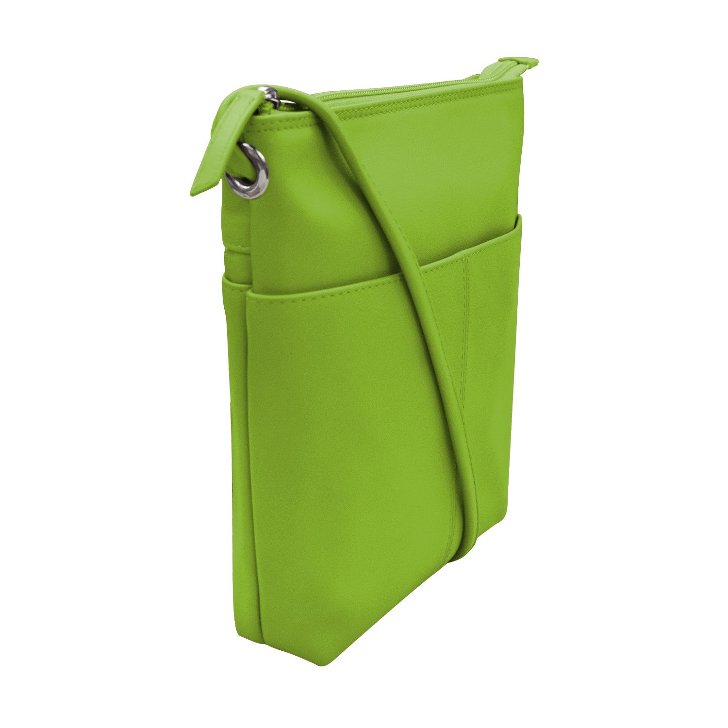 Front slip pocket and back zip pocket. Inside zip pocket.