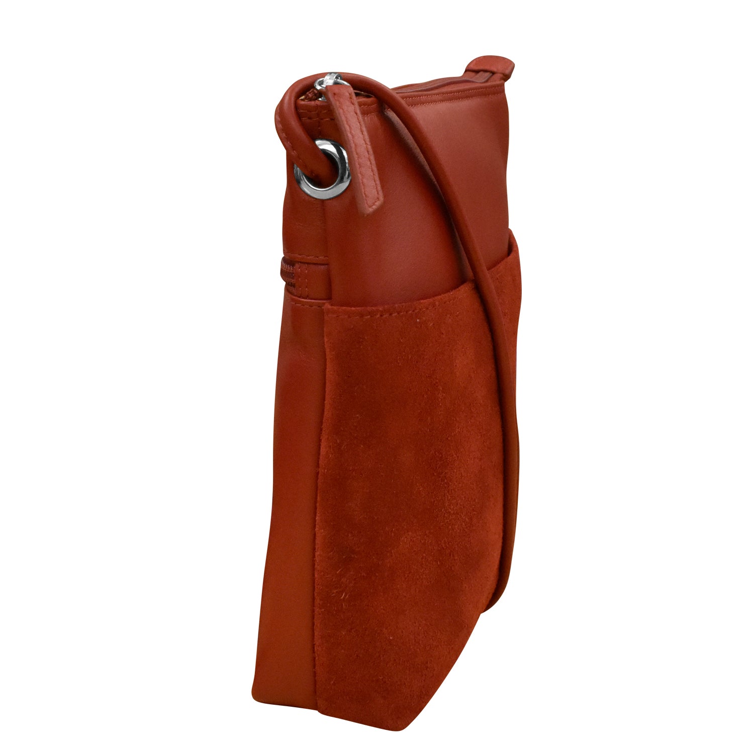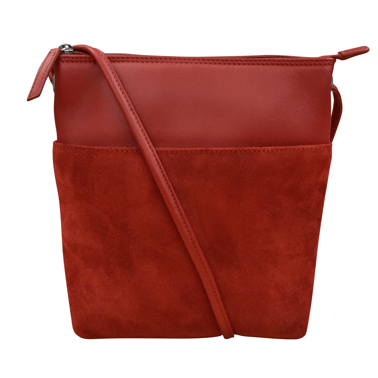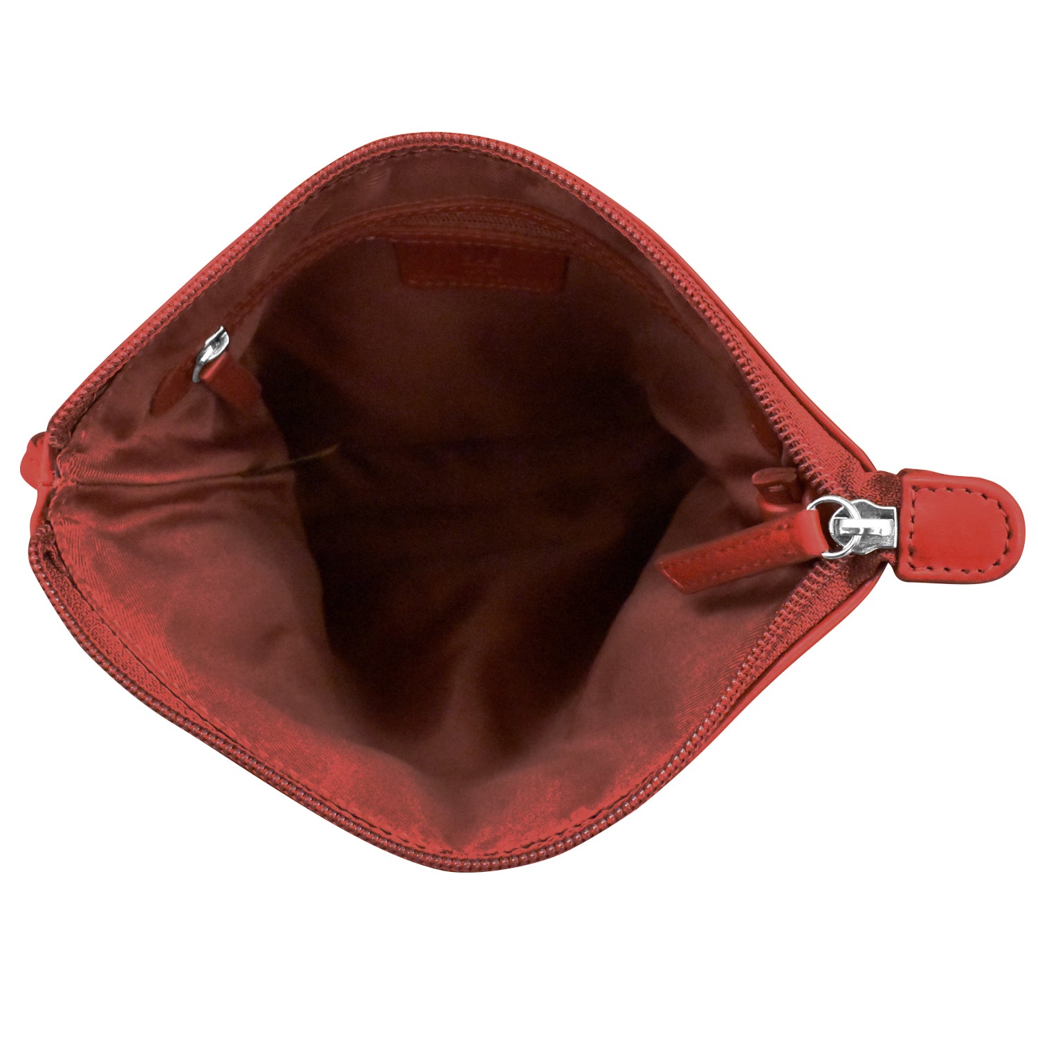 Front slip pocket and back zip pocket. Inside zip pocket.