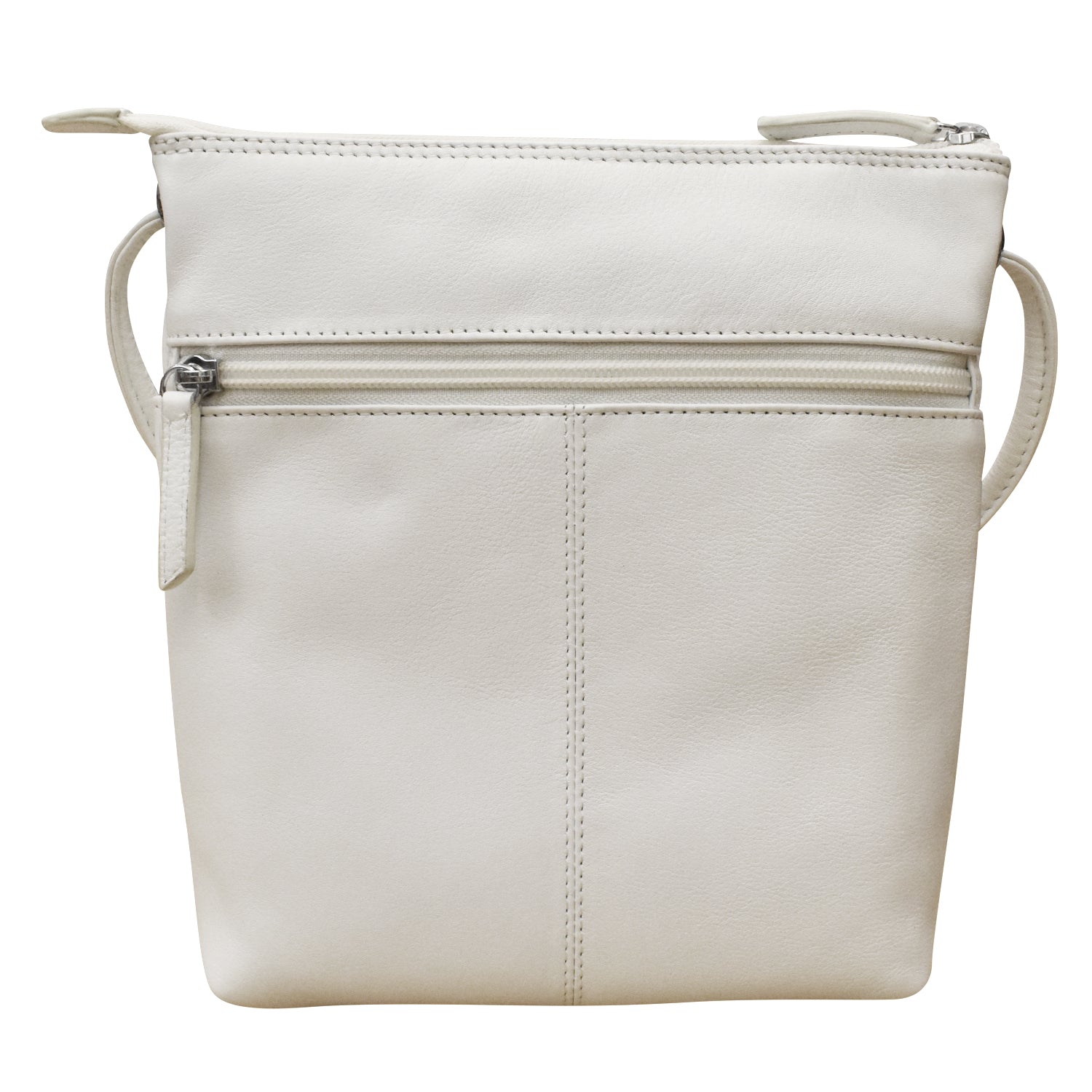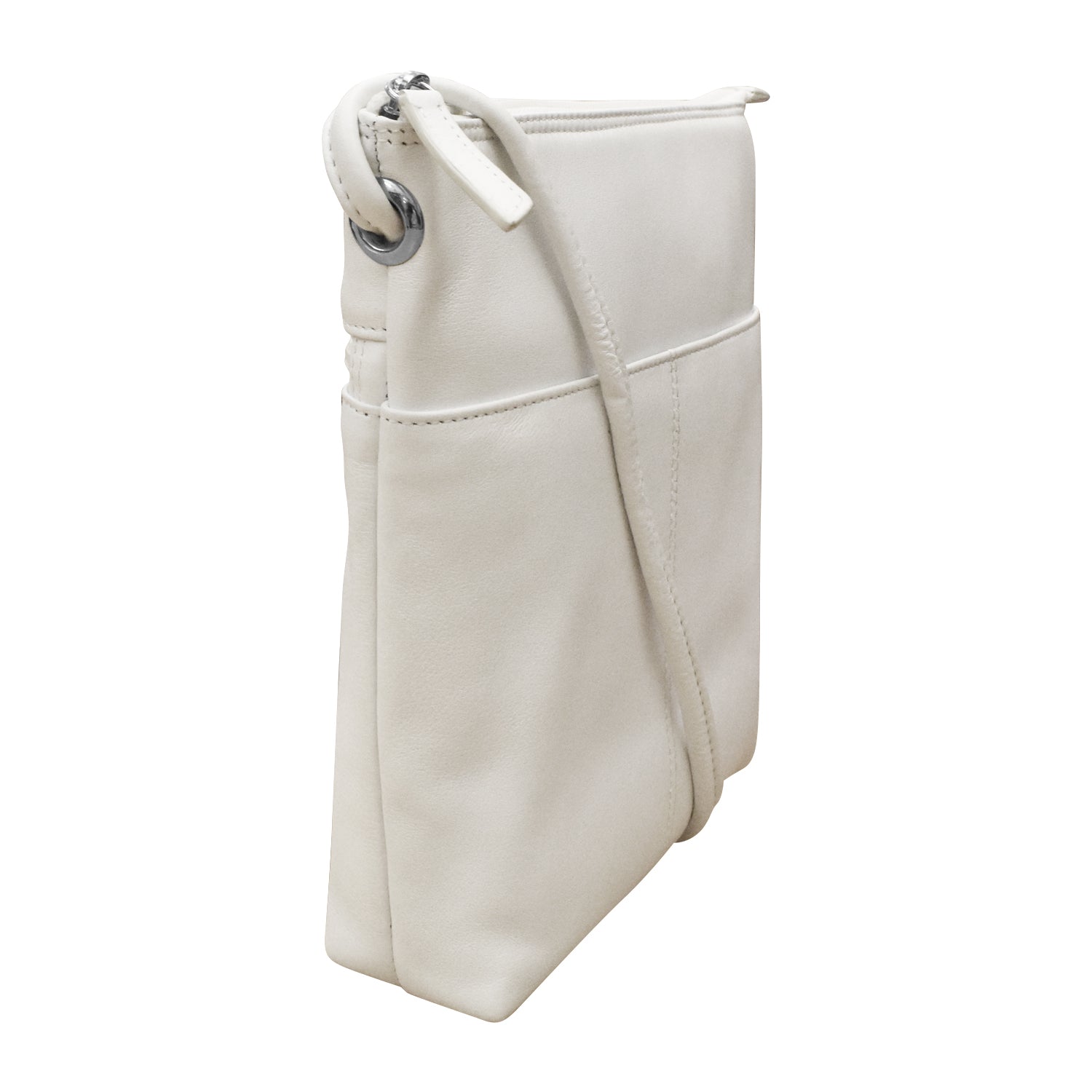 Front slip pocket and back zip pocket. Inside zip pocket.