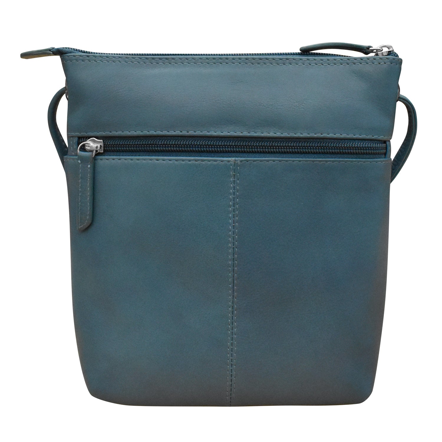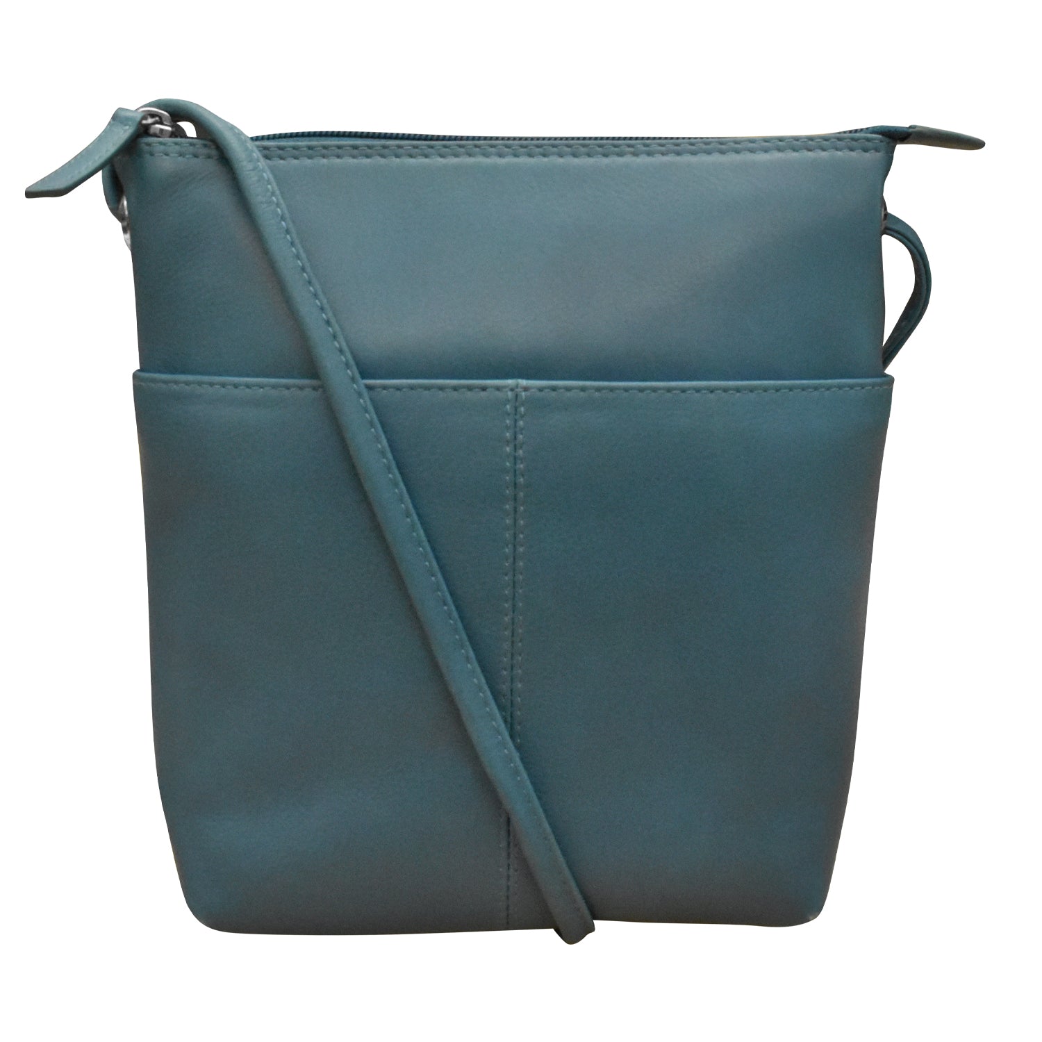 Front slip pocket and back zip pocket. Inside zip pocket.