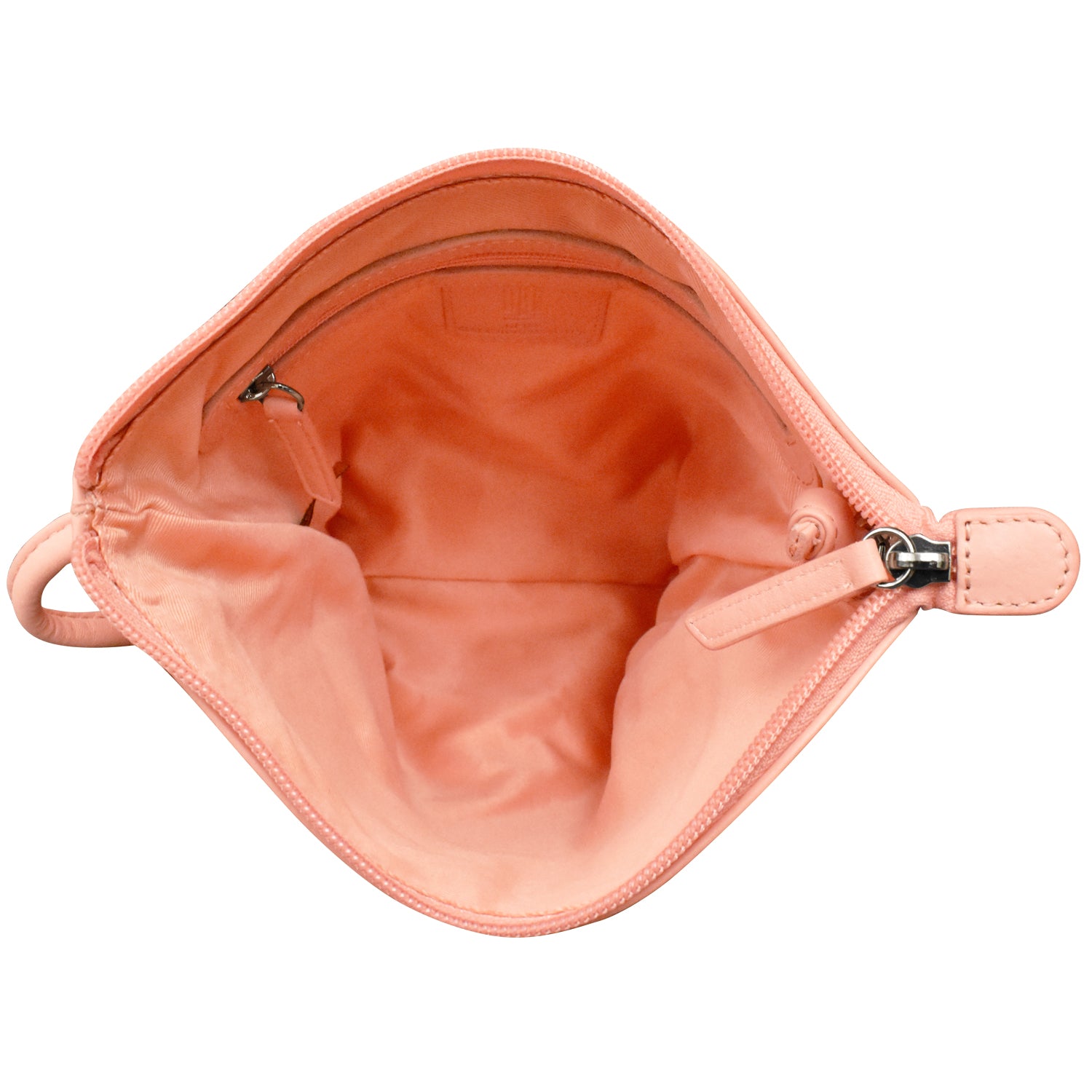 Front slip pocket and back zip pocket. Inside zip pocket.