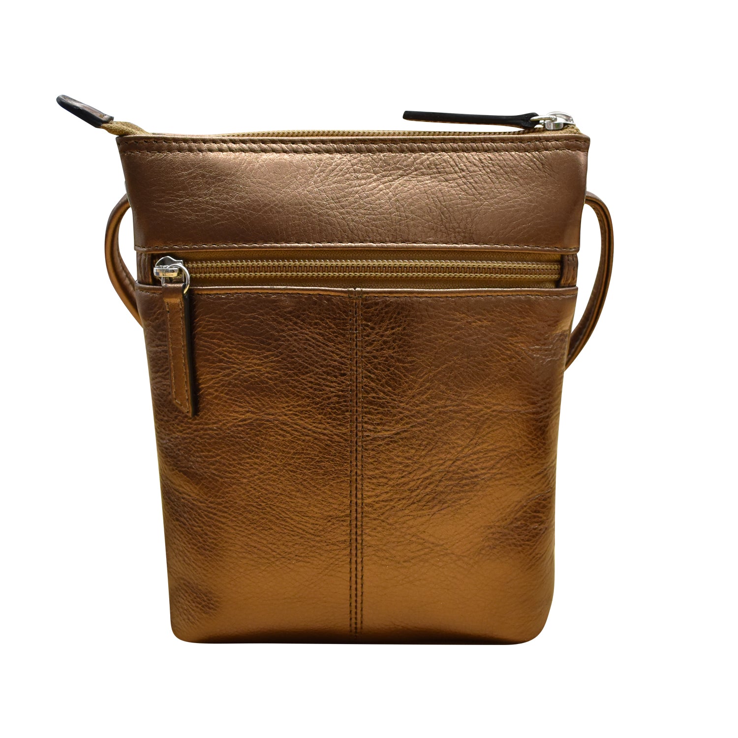 Front slip pocket and back zip pocket. Inside zip pocket.