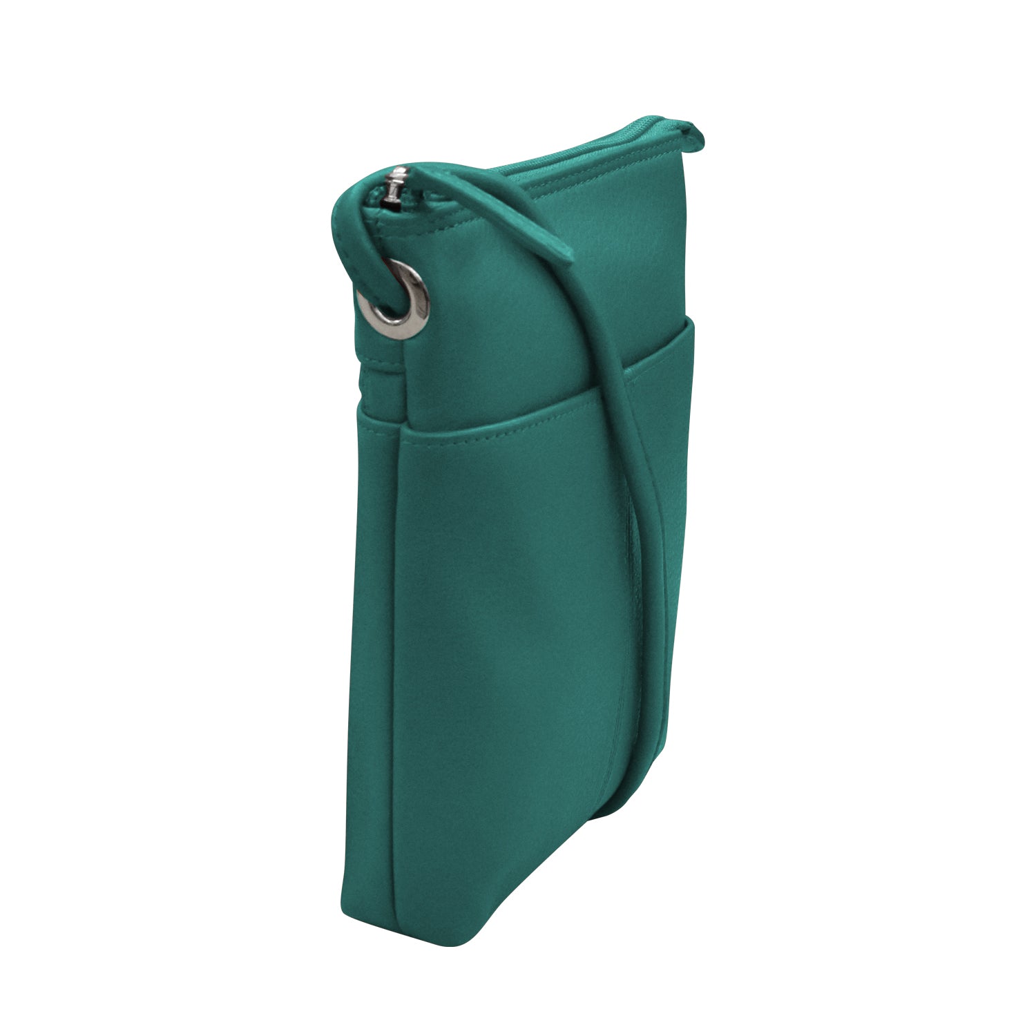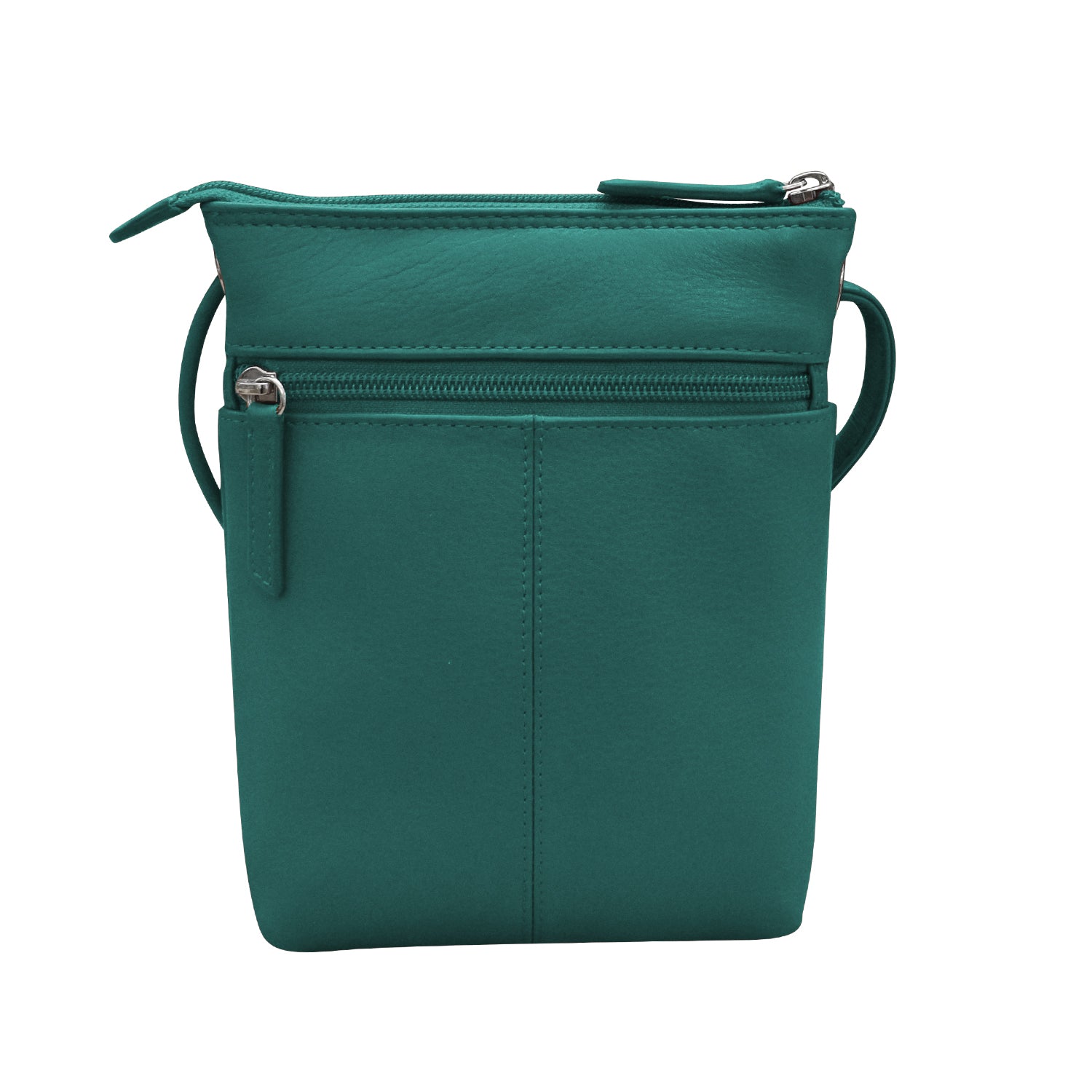 Front slip pocket and back zip pocket. Inside zip pocket.