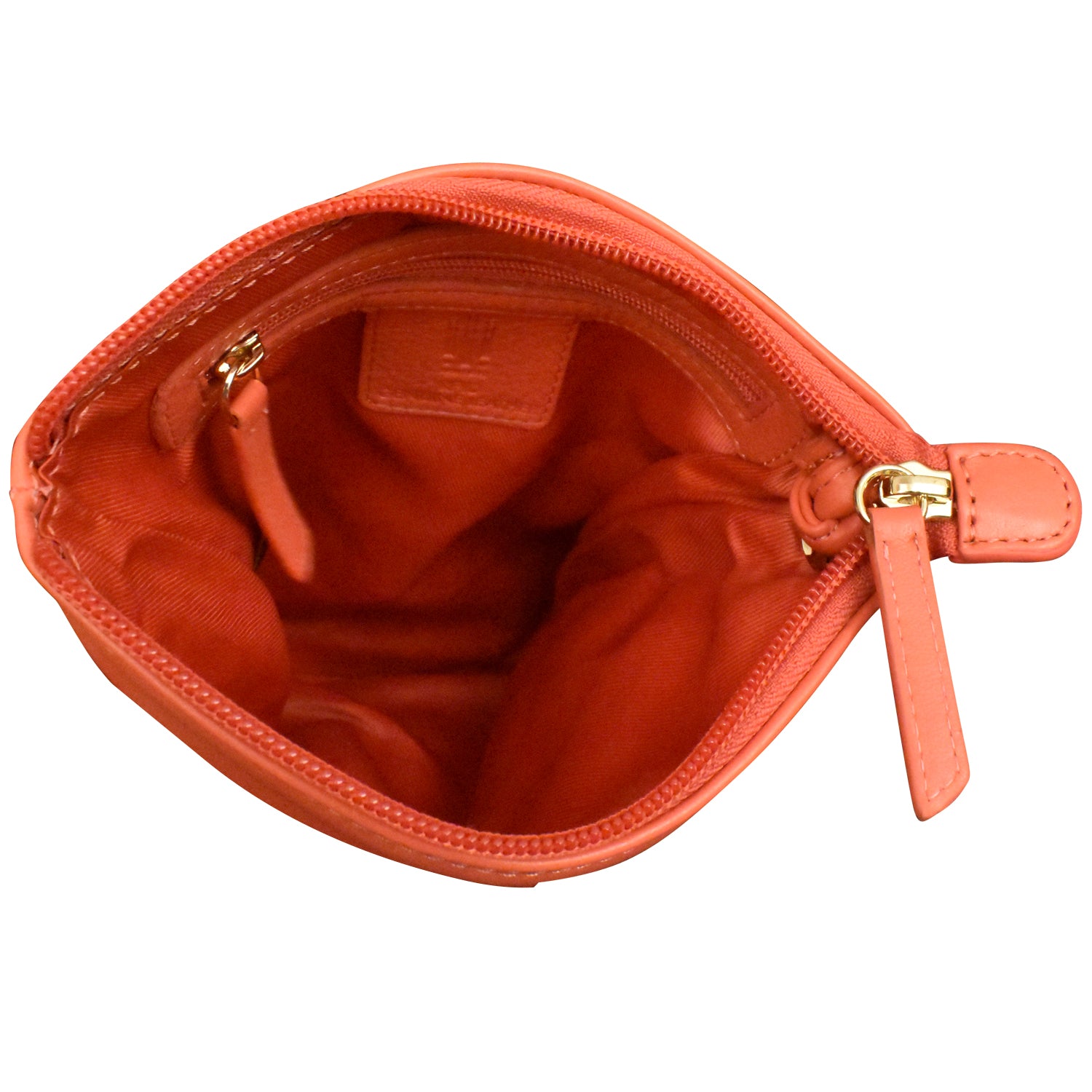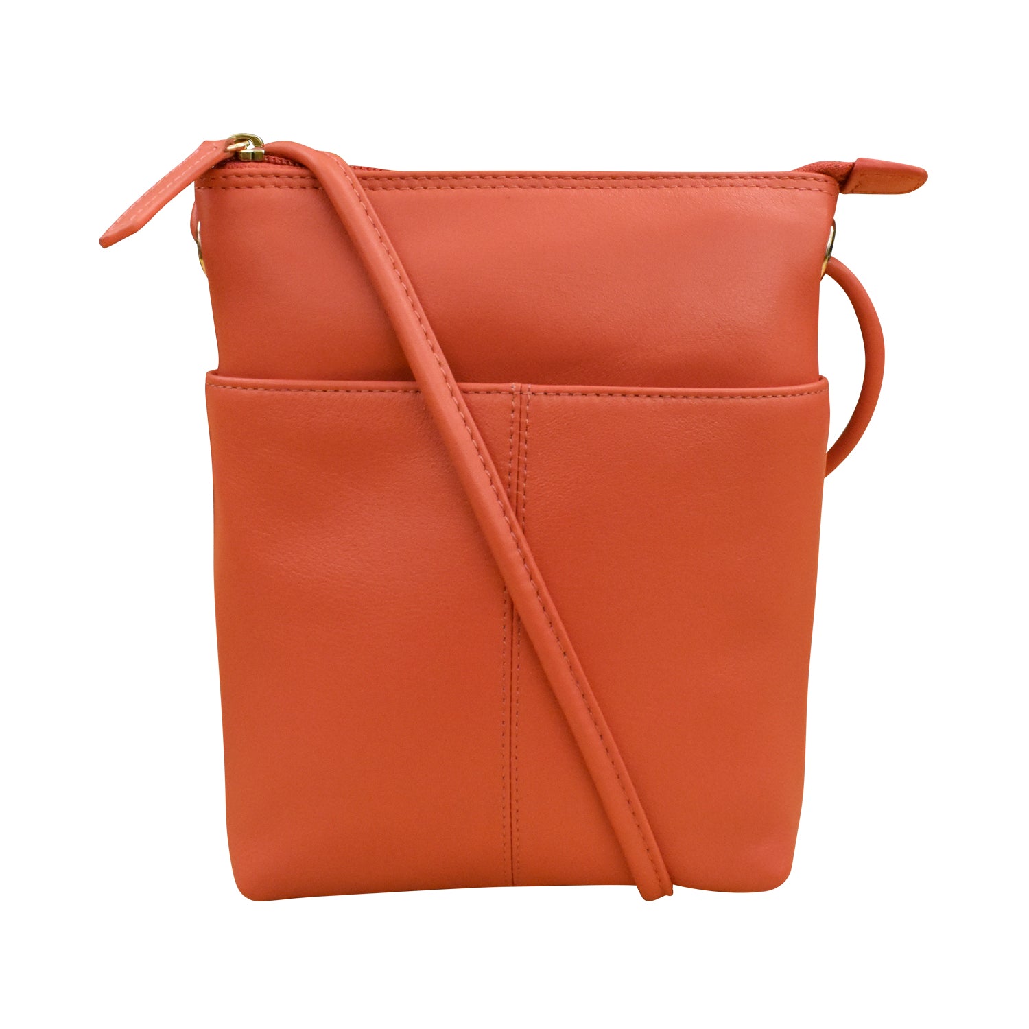 Front slip pocket and back zip pocket. Inside zip pocket.