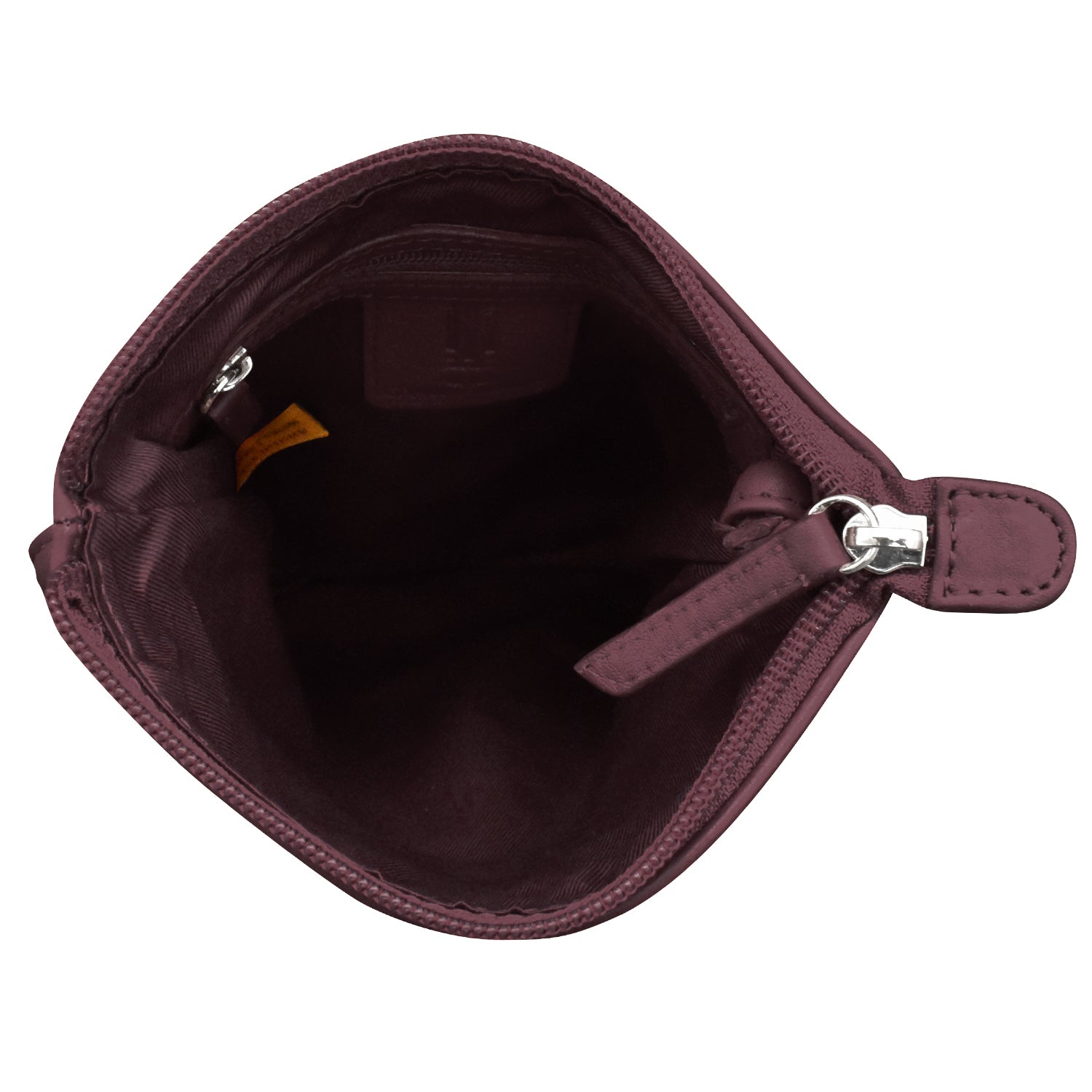 Front slip pocket and back zip pocket. Inside zip pocket.