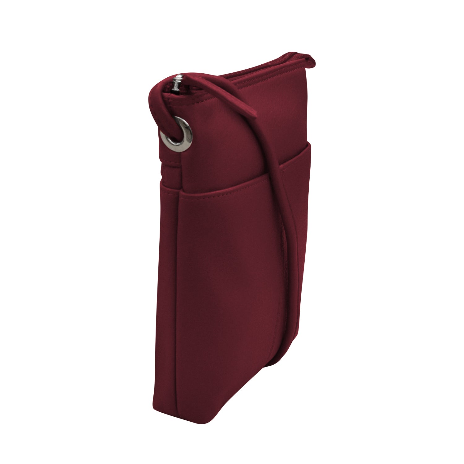 Front slip pocket and back zip pocket. Inside zip pocket.