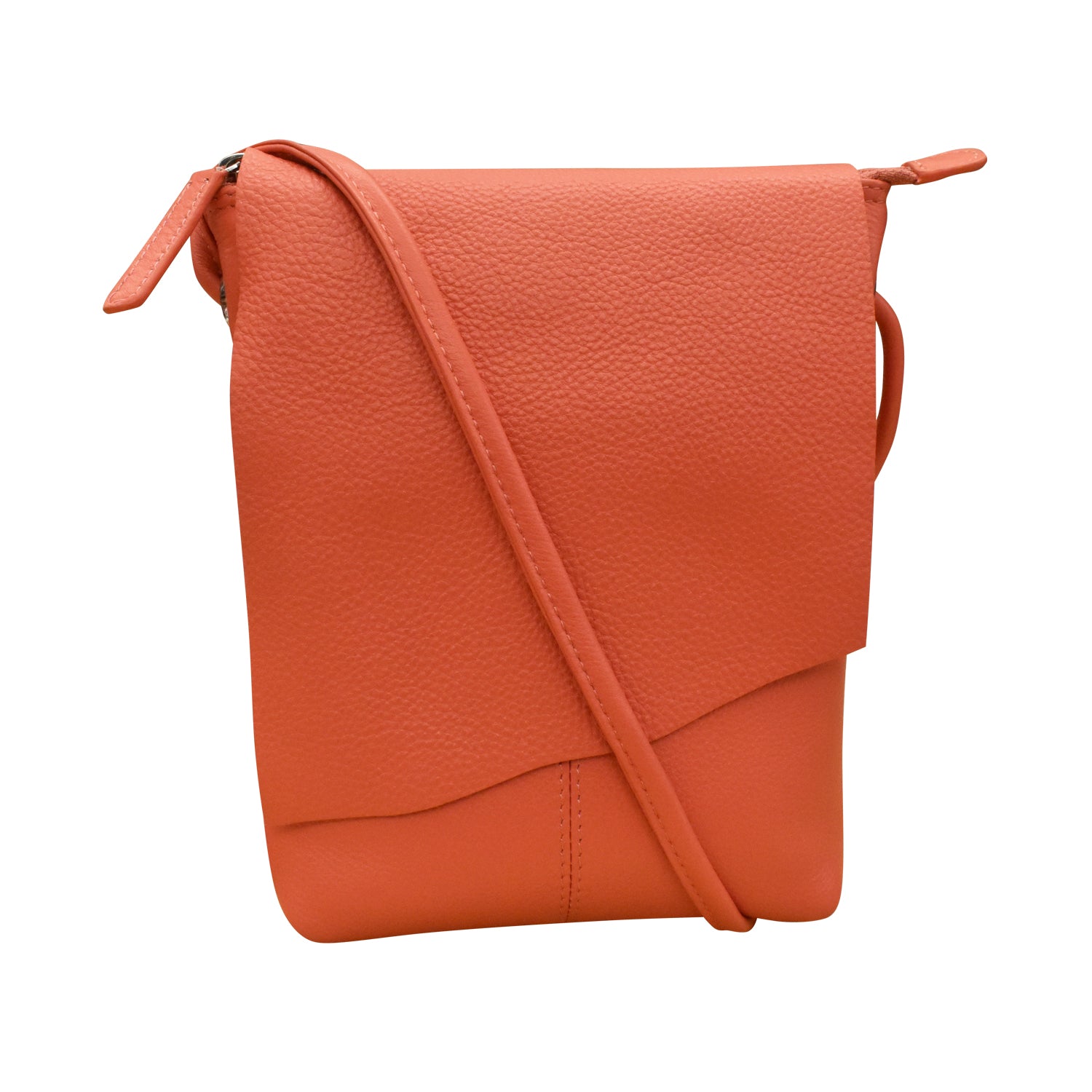 Front slip pocket under flap and back zip pocket. Inside zip pocket.