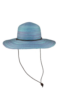 Women's Hat- 100% polyester, 4" Flat Brim, leatherette chin cord, grosgrain band in crown