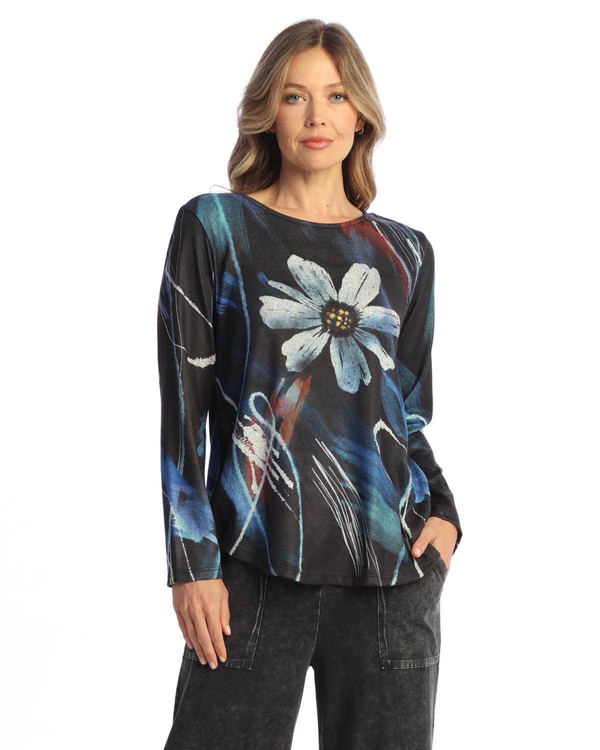 FRENCH BRUSHED ROUND NECK LONG SLEEVE TOP