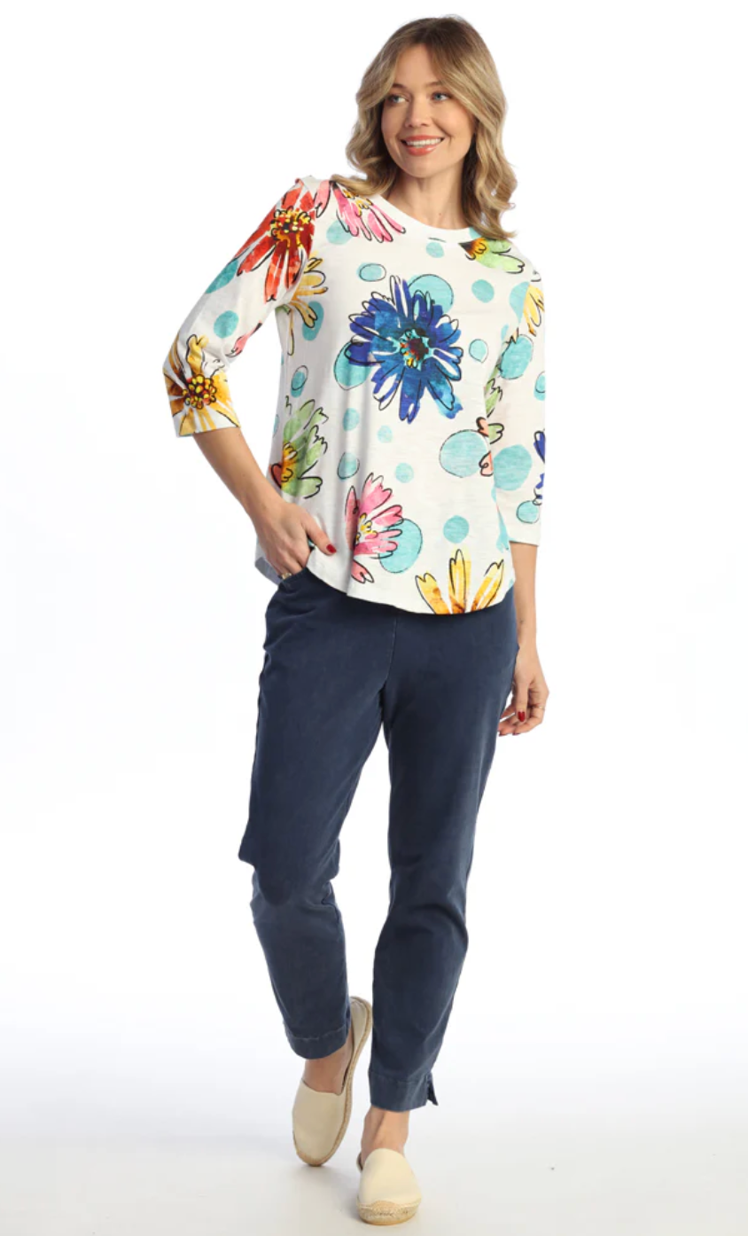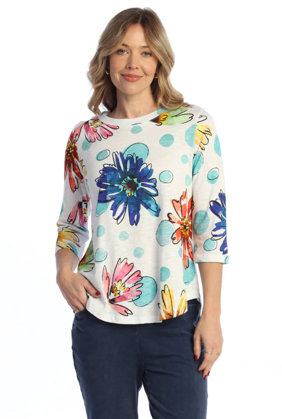 COTTON MODAL ROUND NECK TOP WITH 3/4 SLEEVES