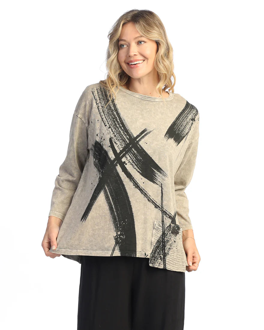 MINERAL WASHED TUNIC TOP WITH GAUZE CONTRAST POCKET