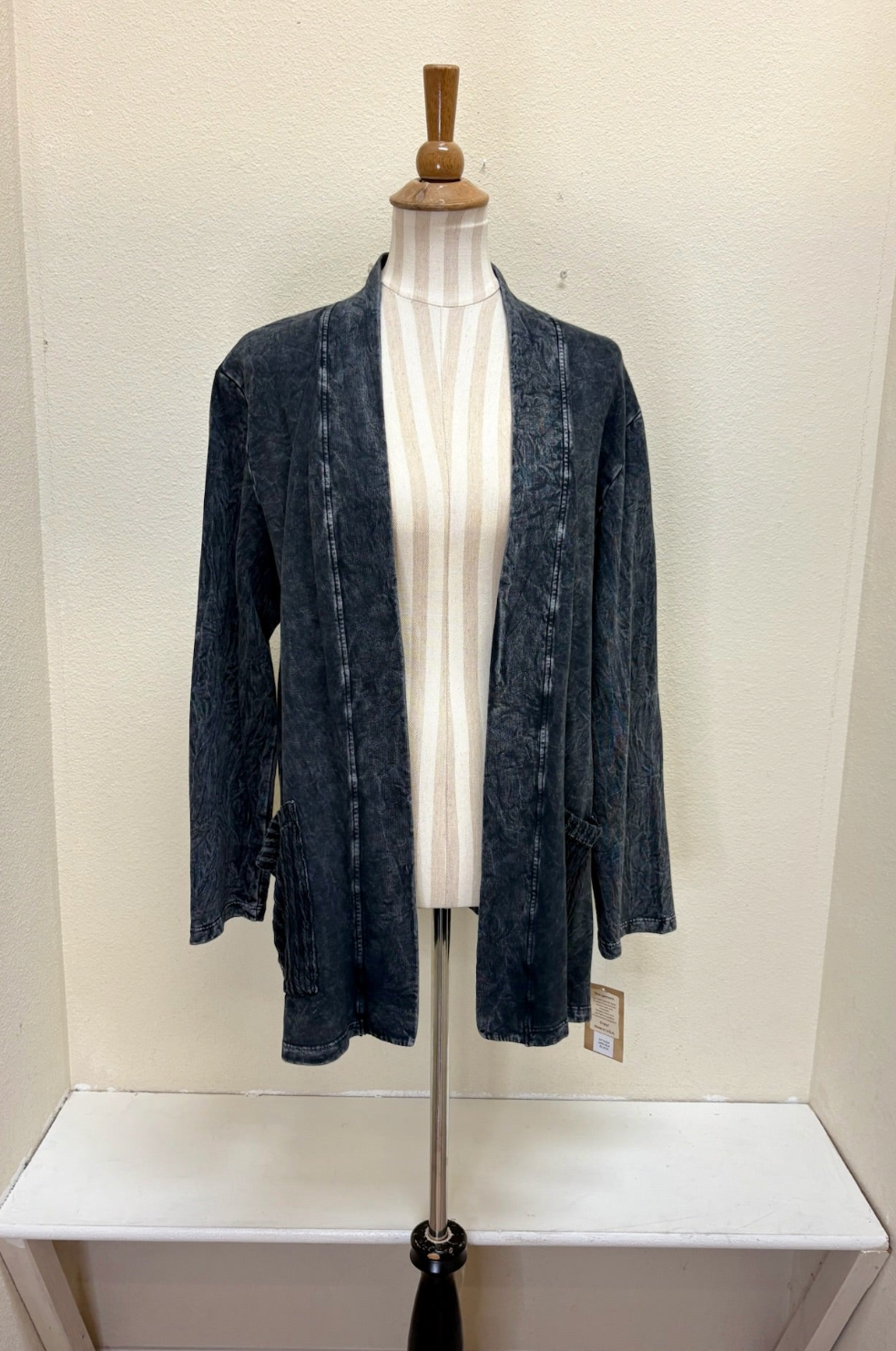 Crafted from luxuriously soft mineral-washed cotton fleece, this open cardigan delivers effortless elegance with its relaxed silhouette. Distinctive contrast patch pockets add a refined design detail, making it the perfect layering piece for a polished, put-together aesthetic. The 100% cotton construction ensures breathable comfort throughout the day.