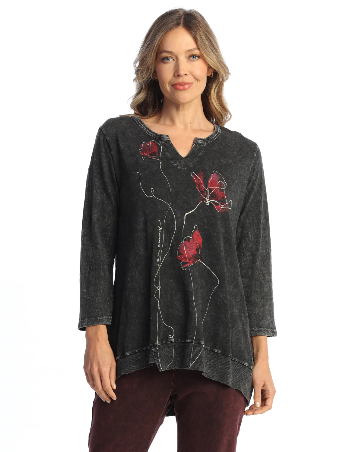MINERAL WASHED 100% COTTON SLUB SLIT V-NECK TUNIC TOP