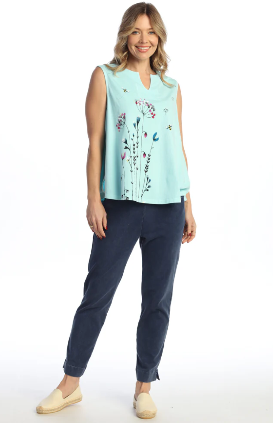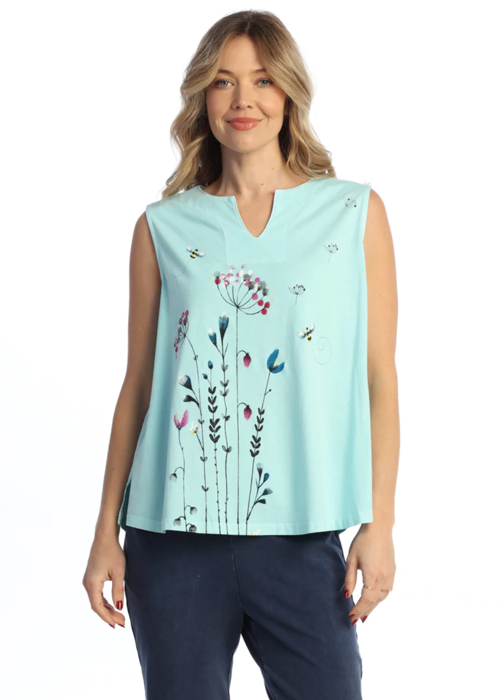 SLEEVELESS COTTON JERSEY TOP WITH NOTCH NECK AND SIDE SLIT