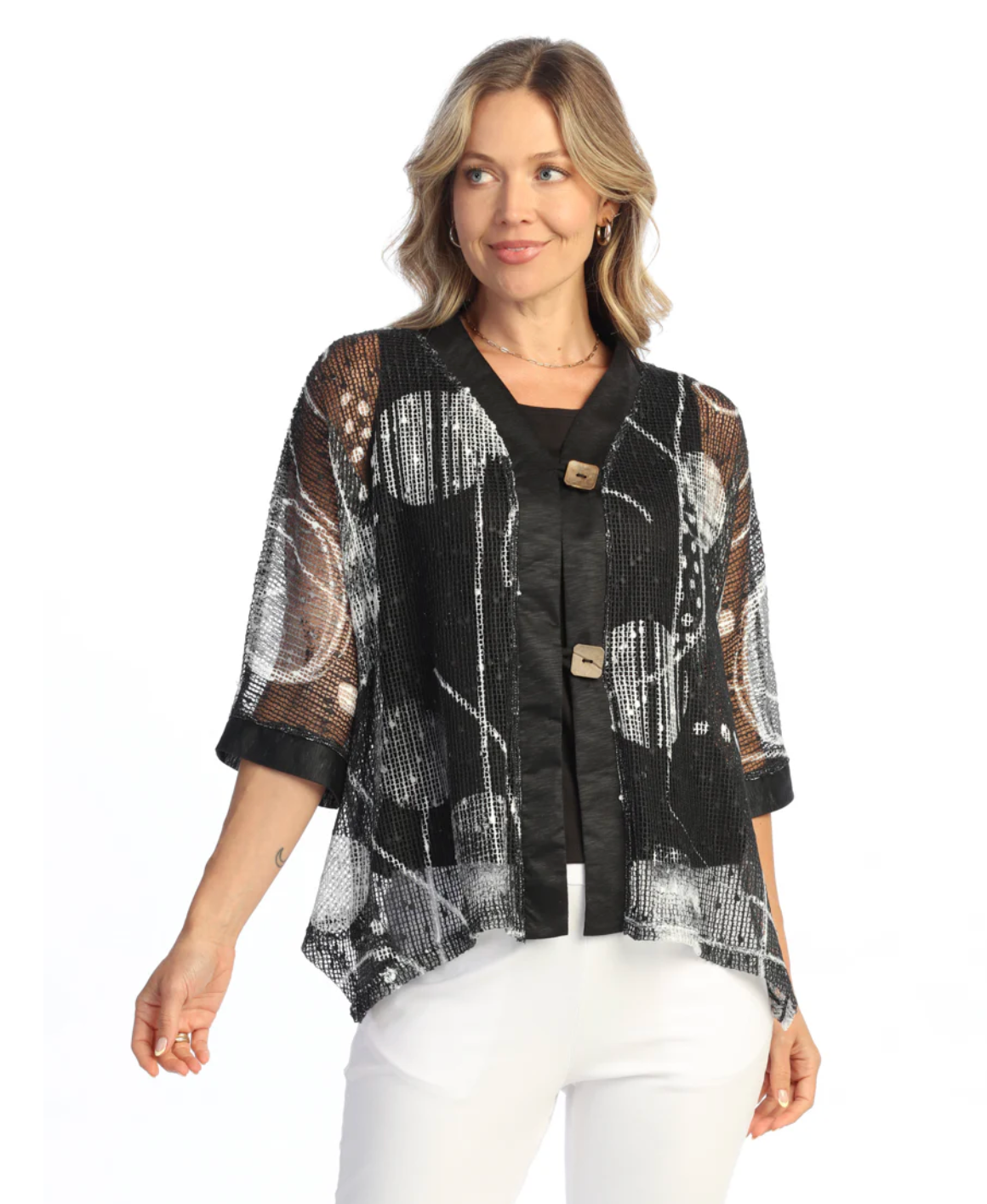 BOUCLE MESH CARDIGAN W/ 2-BUTTON CLOSURE