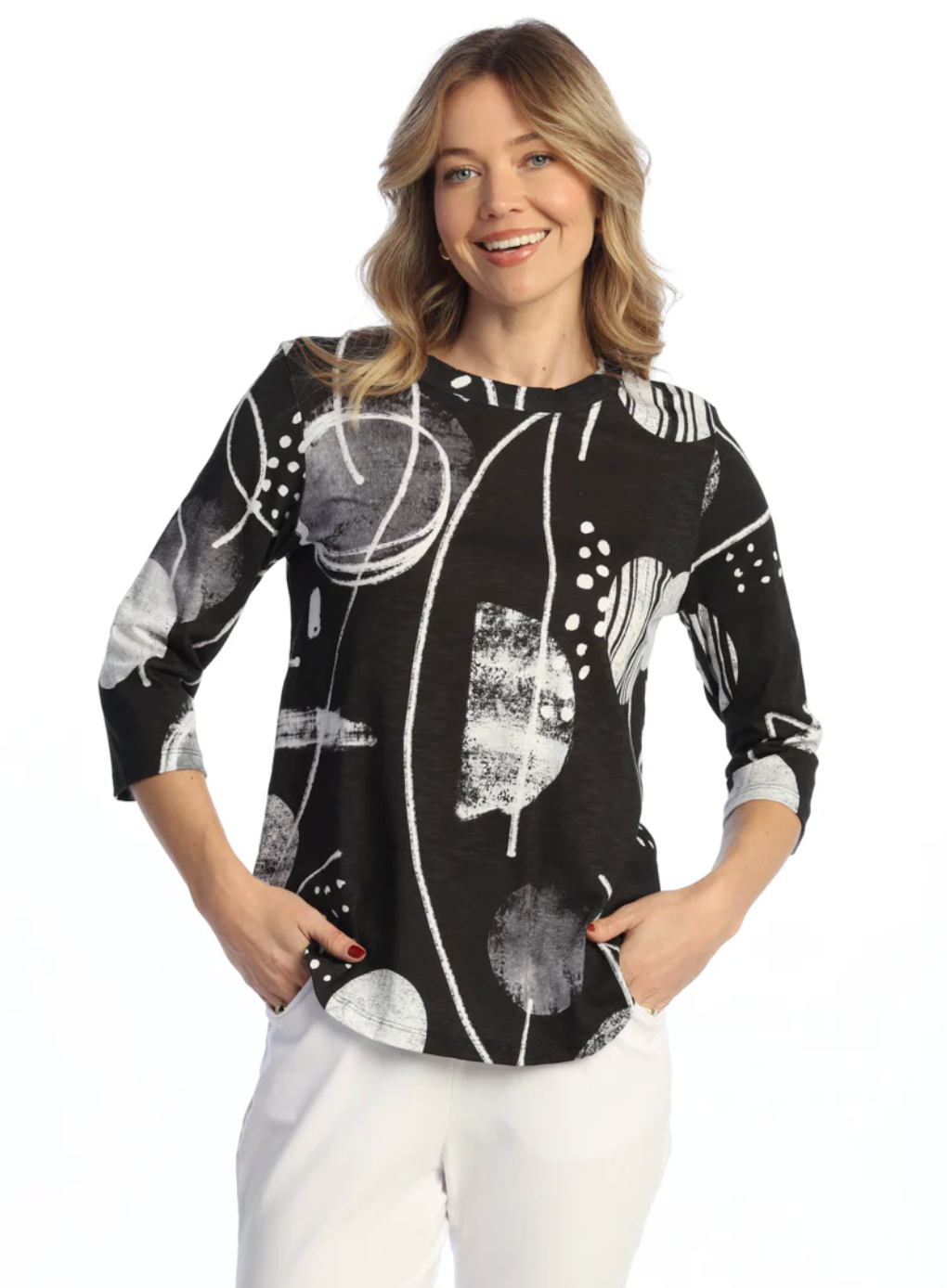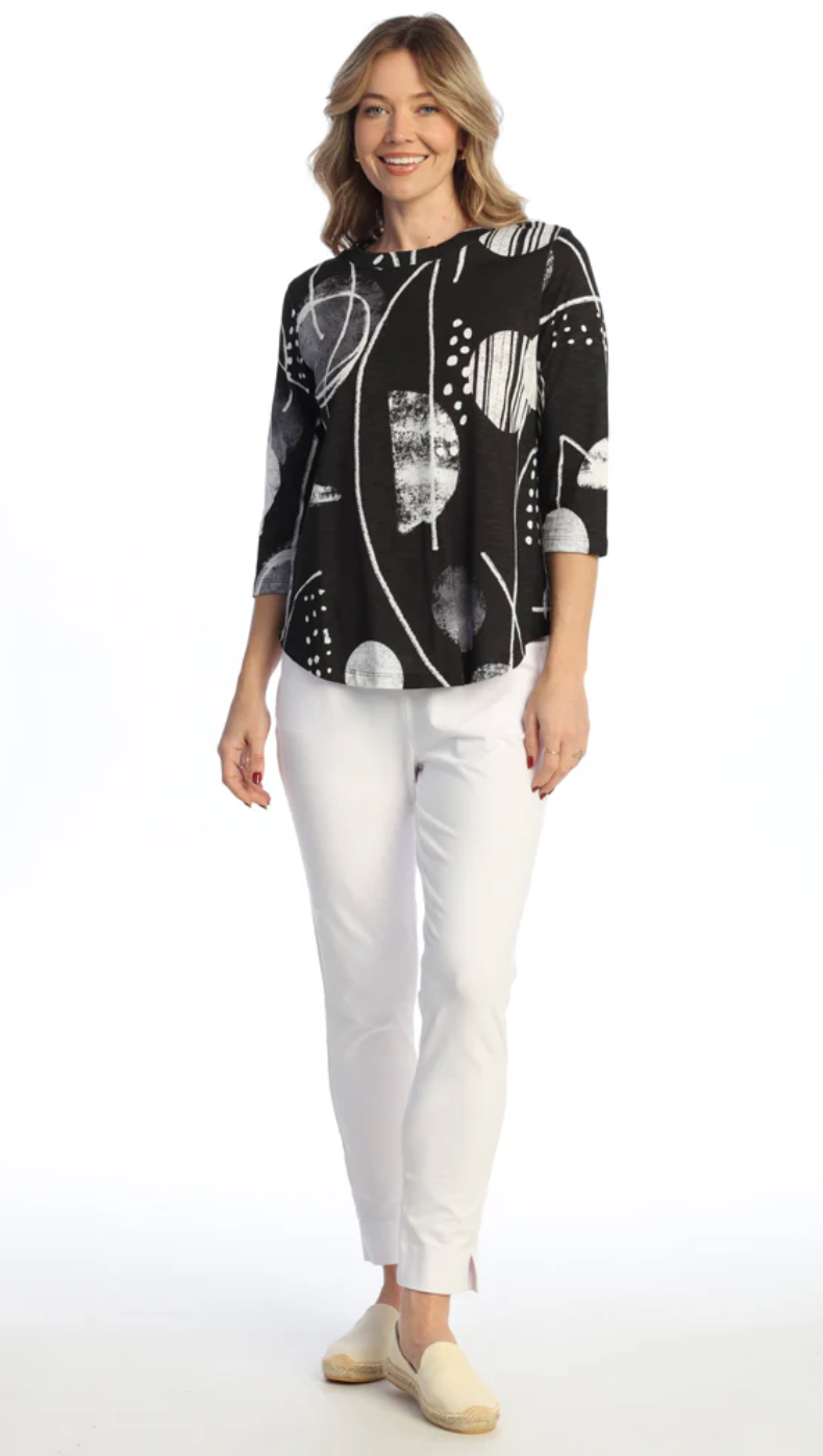COTTON MODAL ROUND NECK TOP WITH 3/4 SLEEVES