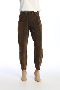 Crafted from a luxurious mineral-washed cotton-spandex blend, these lantern pants feature refined side seam detailing that elevates the silhouette. The relaxed, flowing fit offers both comfort and contemporary style, making them an effortless addition to any wardrobe.