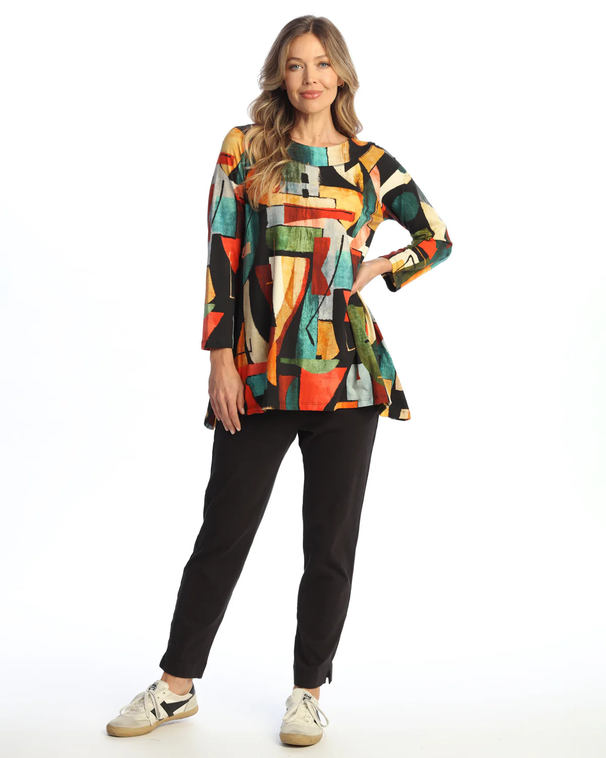 COTTON SPANDEX ROUND NECK RAGLAN SLEEVE TUNIC TOP (PRINT PLACEMENT MAY VARY)