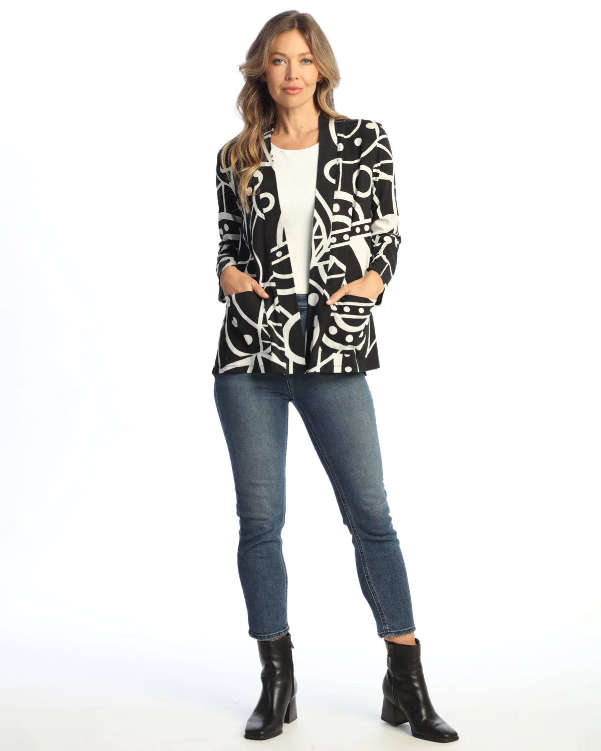 COTTON SPANDEX OPEN CARDIGAN WITH POCKETS (PRINT PLACEMENT MAY VARY)