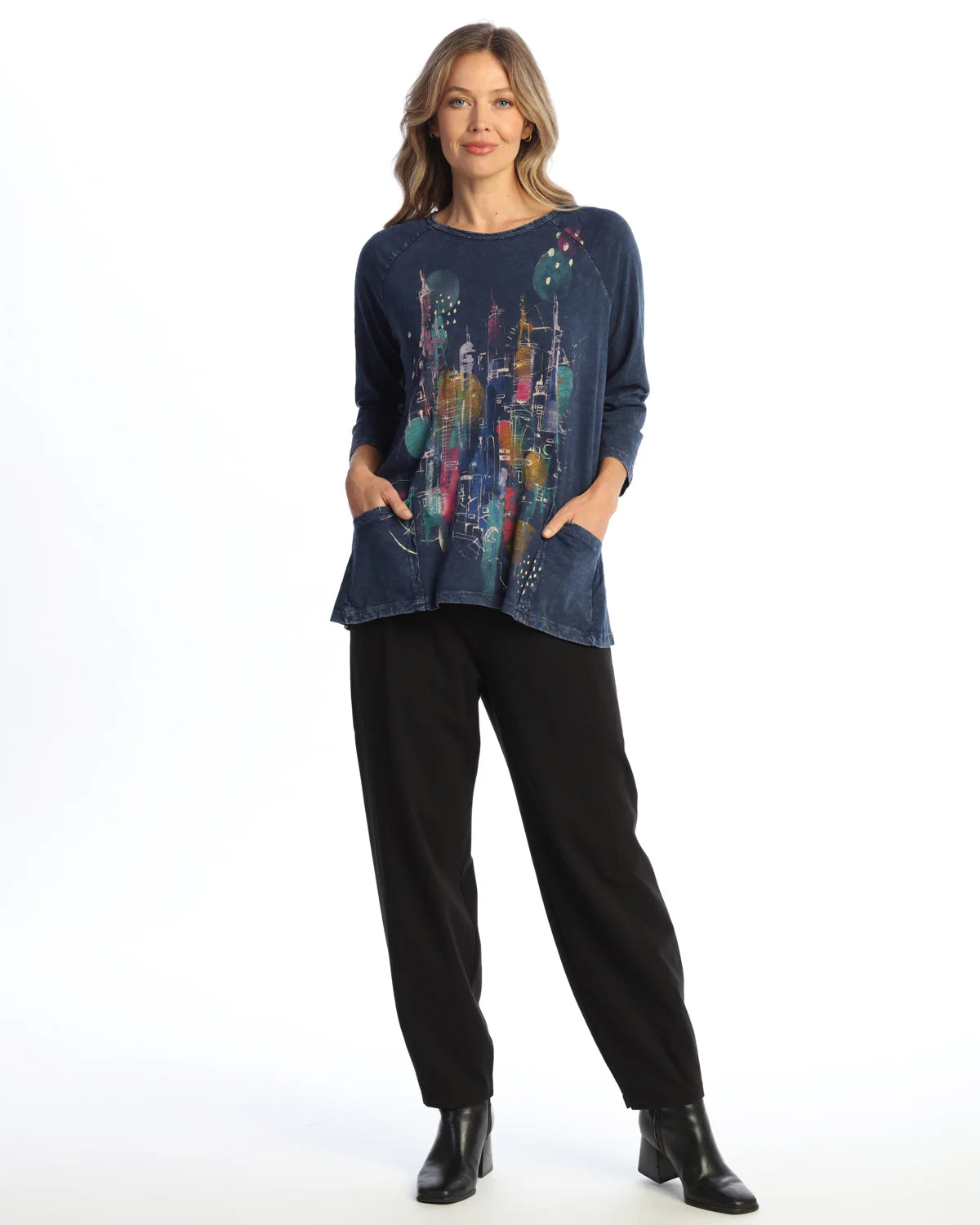 MINERAL WASHED 100% COTTON SLUB PATCH POCKETS TUNIC TOP