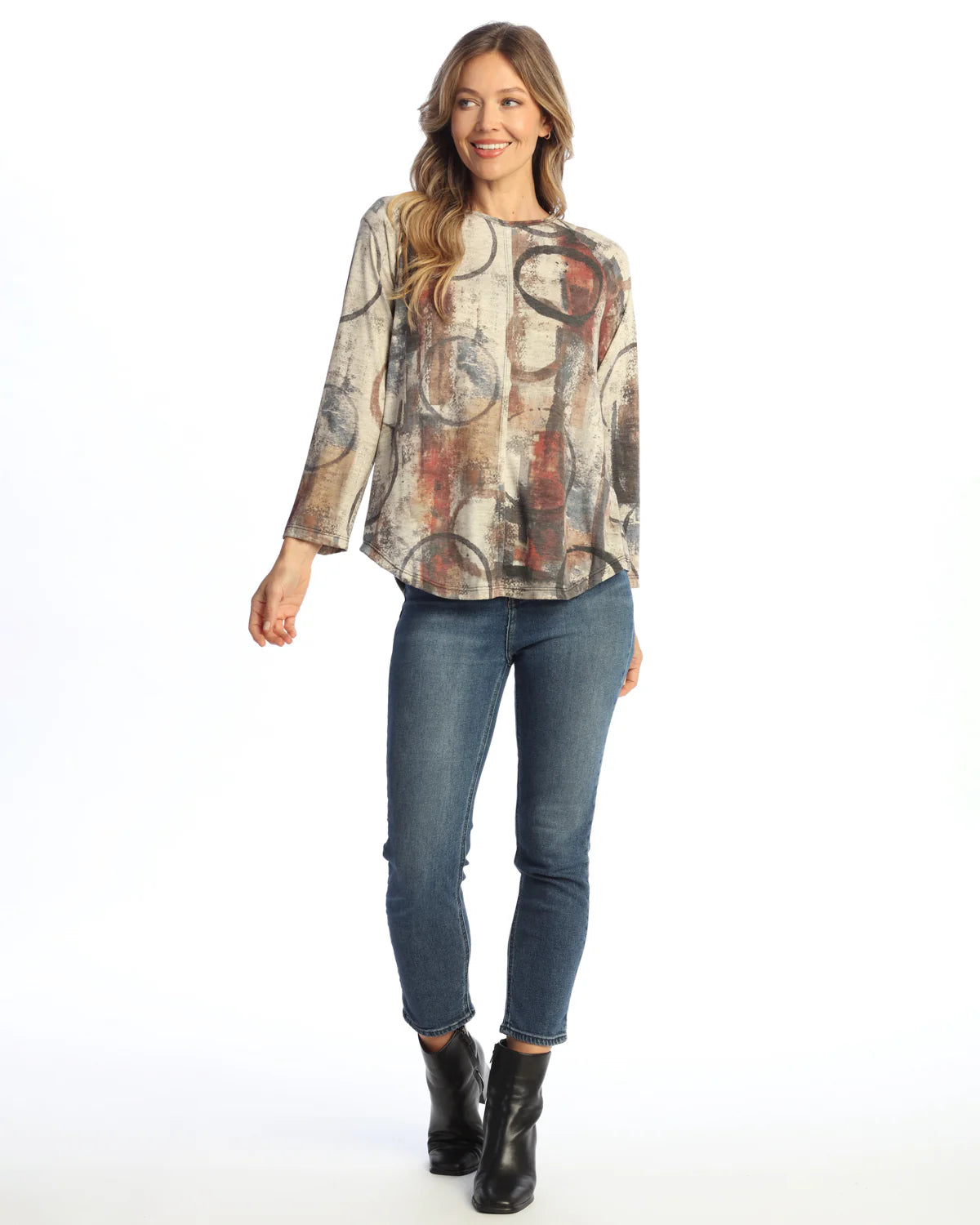 I love the new top and happily added it to the rest of my Jess and Jane tops and bottoms, All these are designed for comfort, sport great inventive patterns, and well made. Happy I discovered Jess and Jane.