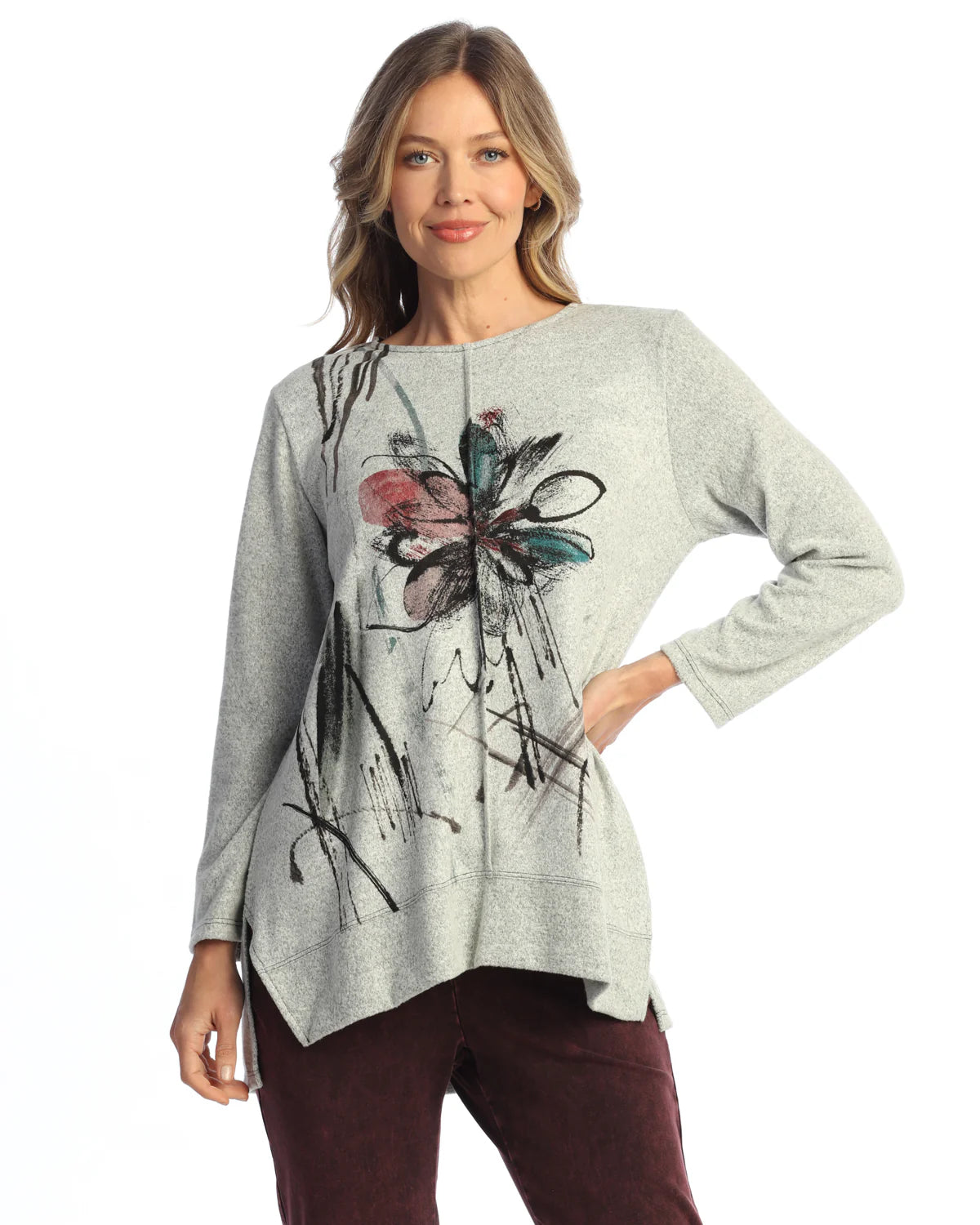 FRENCH BRUSHED KNIT SIDE-SLIT TOP WITH FRONT SEAM (MEDIUM WEIGHT)