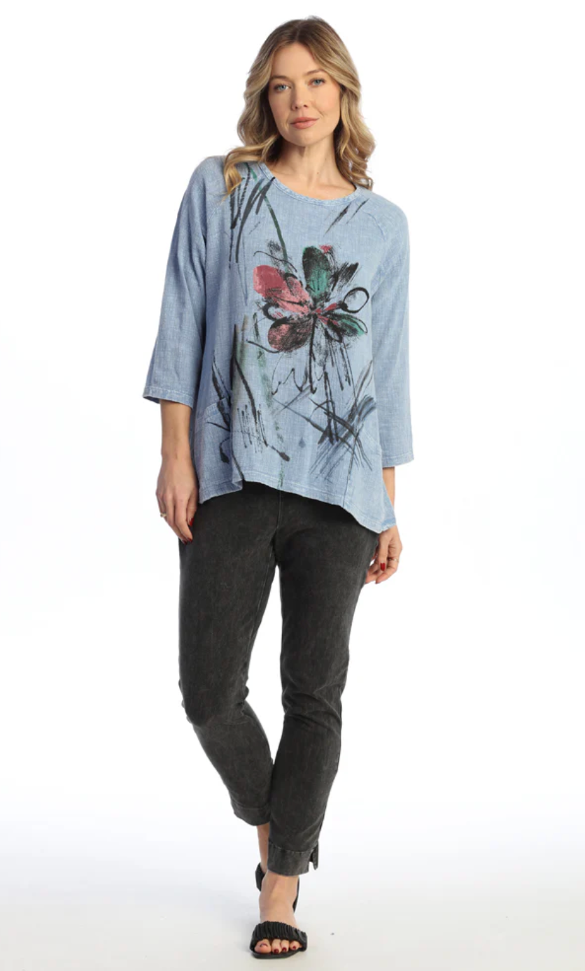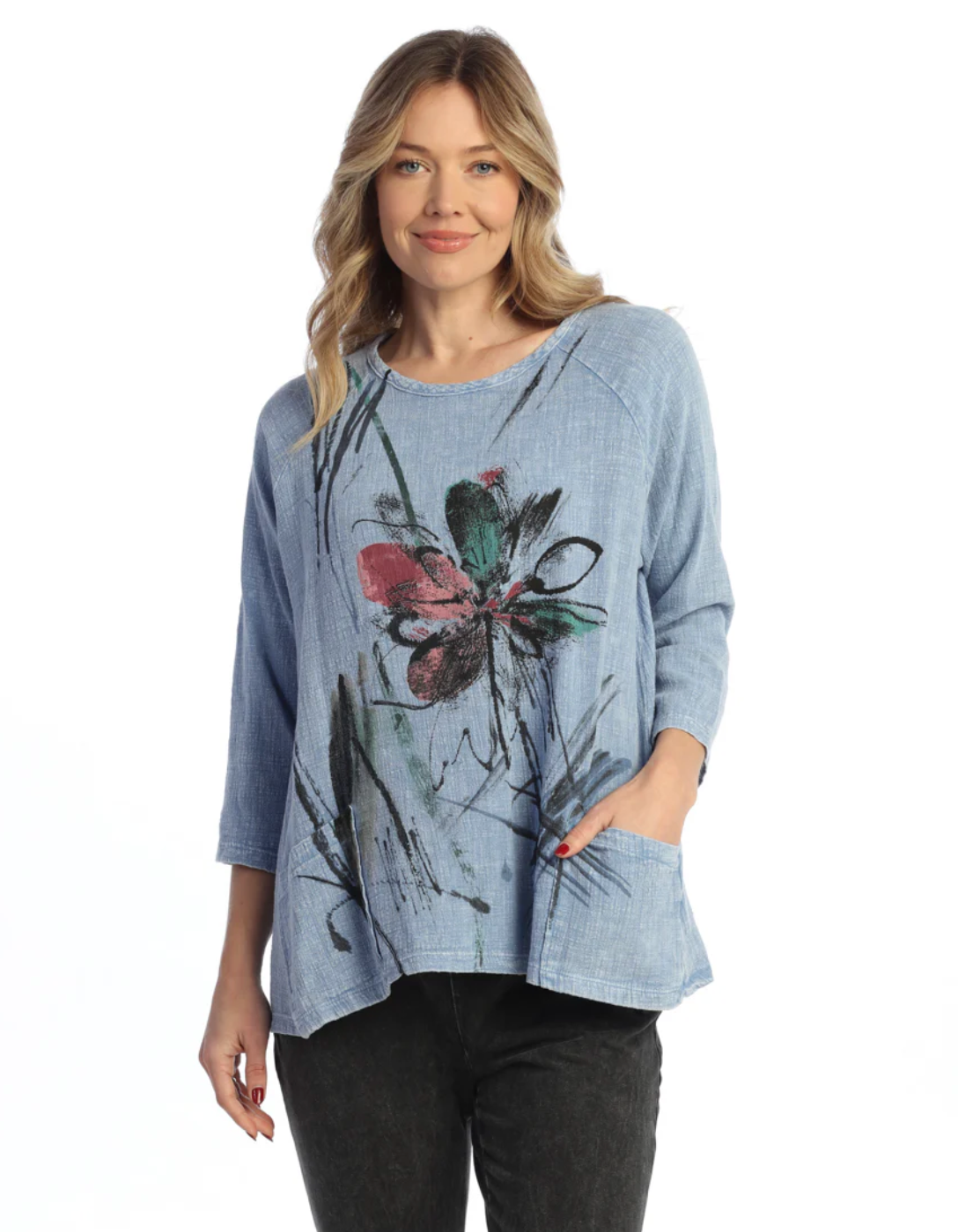 MINERAL WASHED GAUZE TUNIC TOP W/ PATCH POCKETS