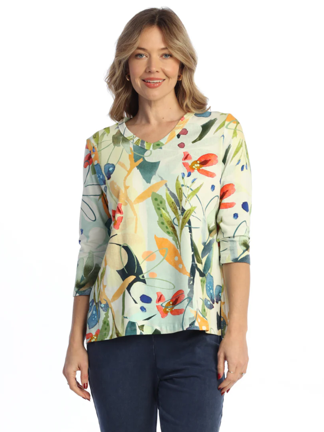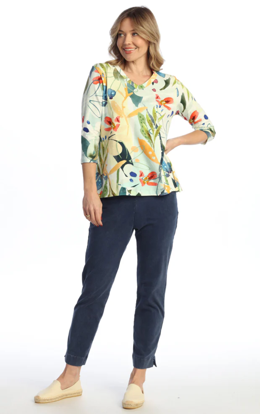 COTTON SPANDEX V-NECK TOP WITH SIDE SLITS
