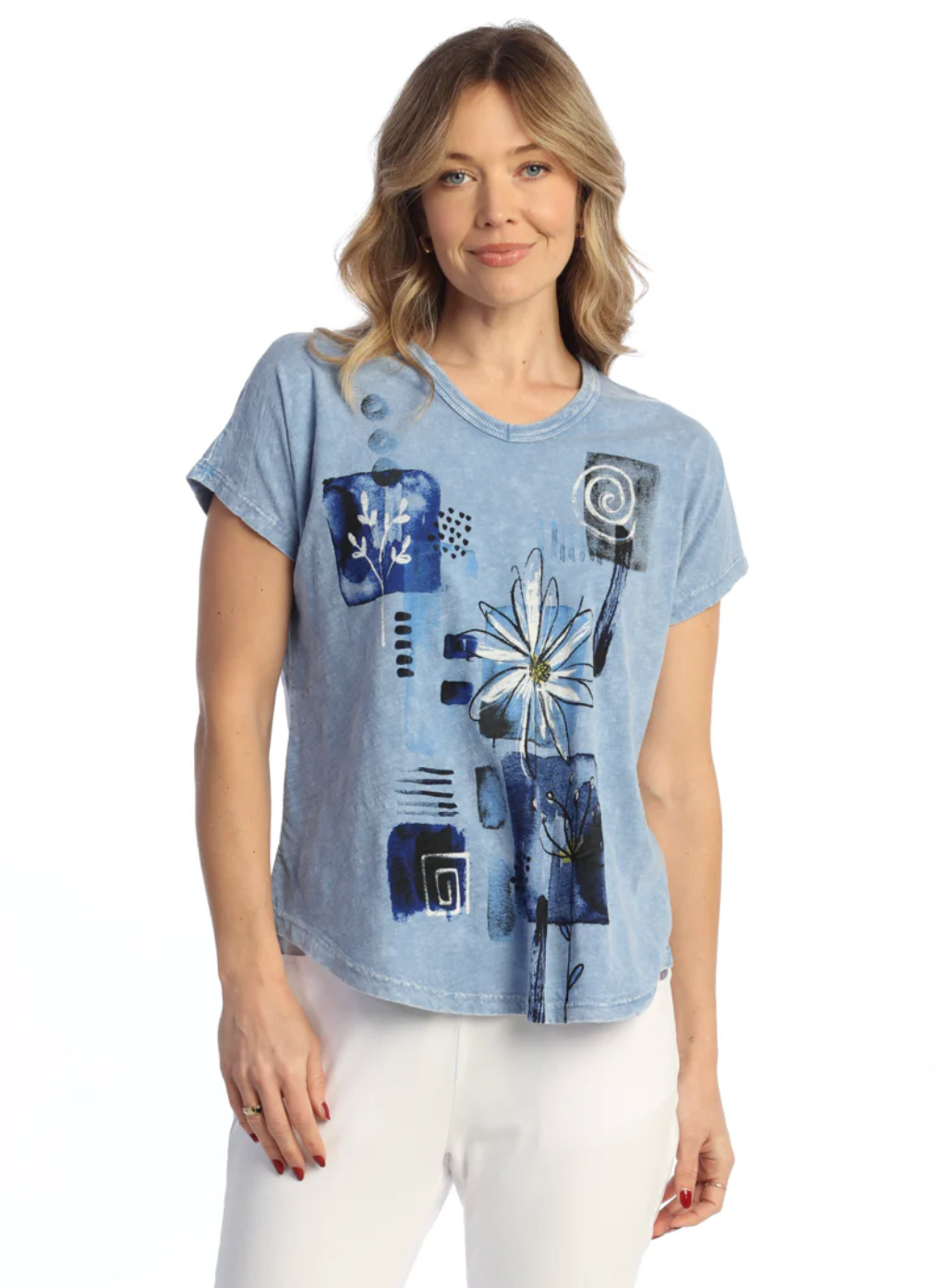 Mineral Washed 100% Cotton Slub Short-Sleeve Top