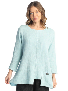Mineral Washed Double Gauze Tunic Top With Pocket