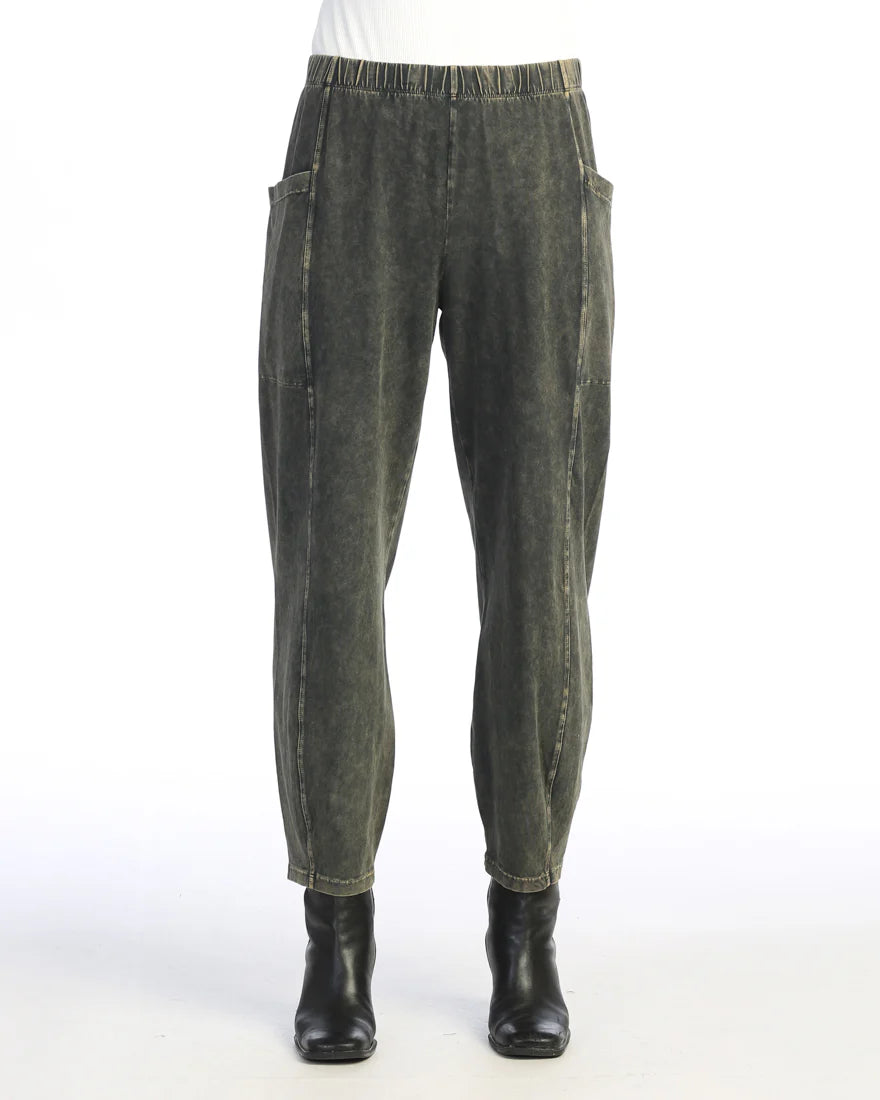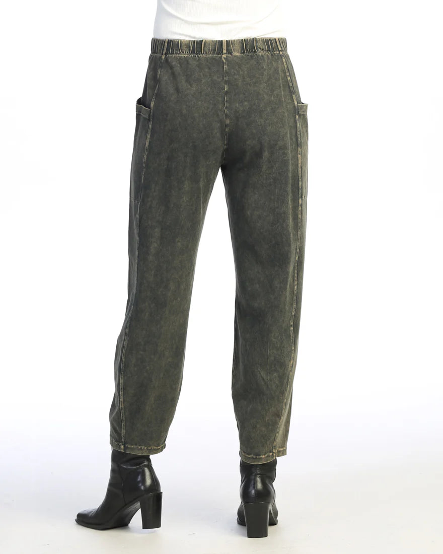 Mineral Washed Cotton Spandex Lantern Pants With Side Patch Pockets