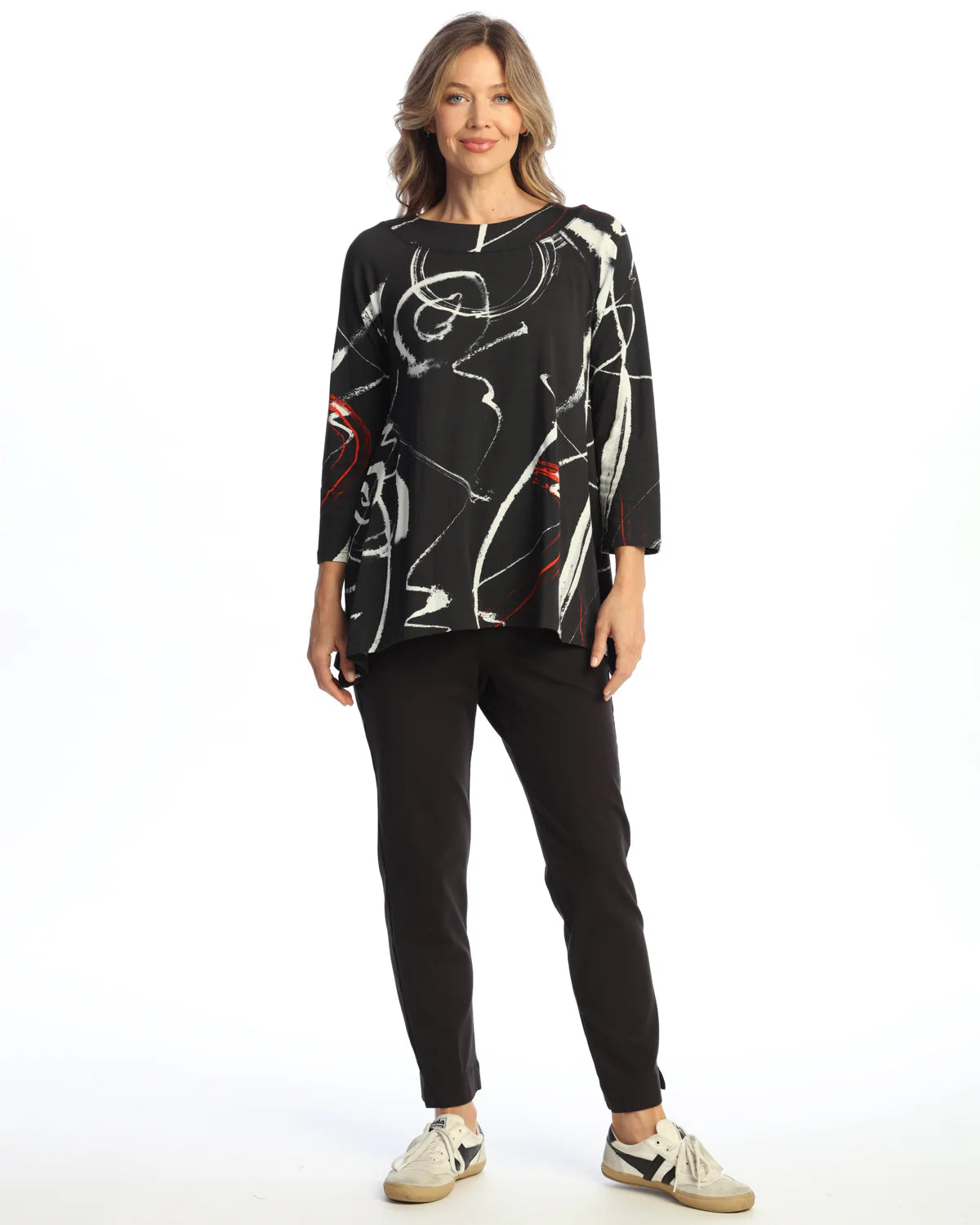 COTTON SPANDEX ROUND NECK RAGLAN SLEEVE TUNIC TOP (PRINT PLACEMENT MAY VARY)