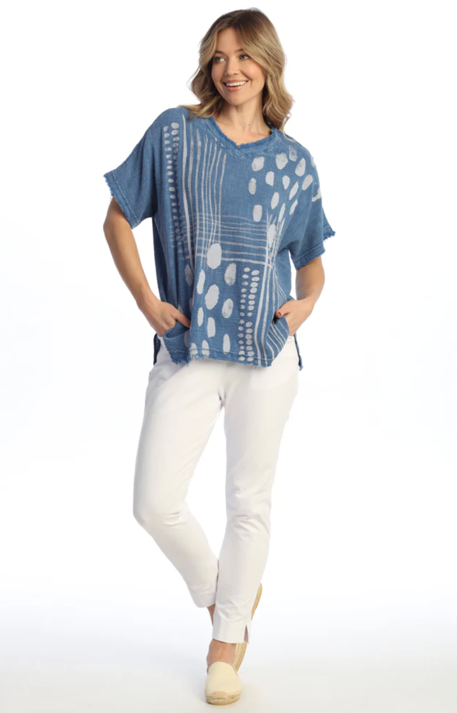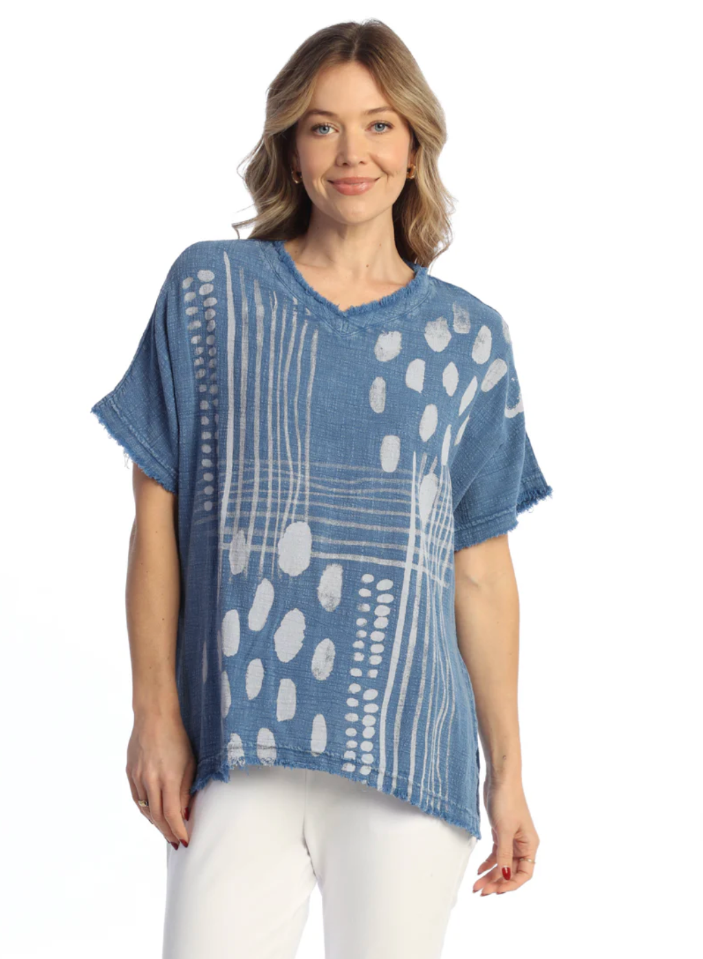 Mineral Washed Short-Sleeve Gauze Top With Fringe Accents
