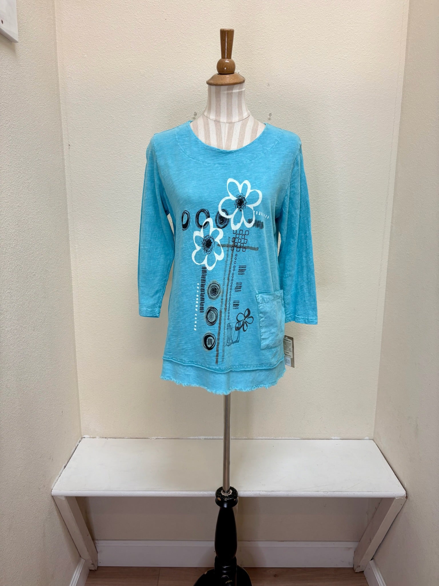 Mosaic, Mineral Washed, Slub Tunic Top With Linen Contrast and Pocket