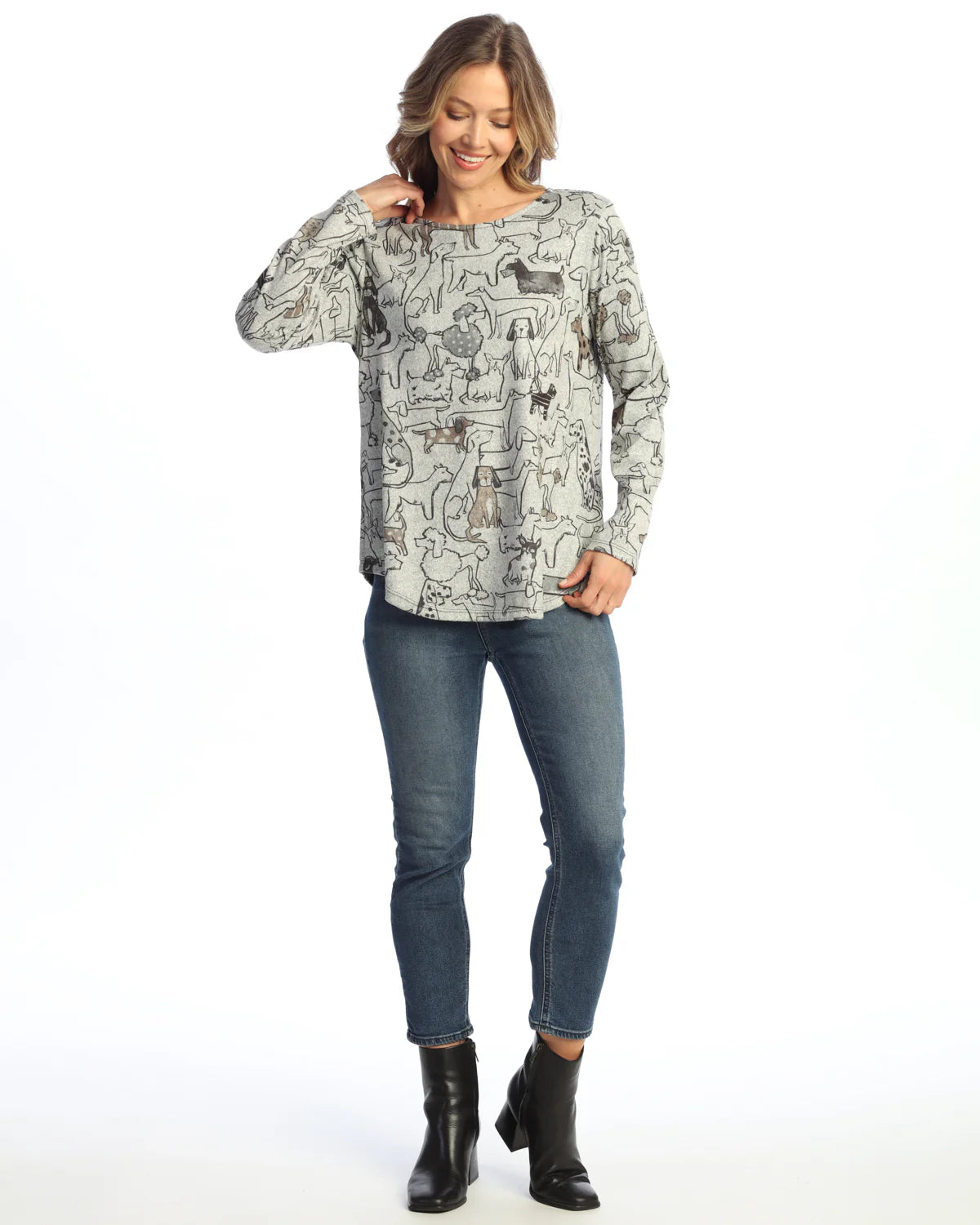 FRENCH BRUSHED ROUND NECK LONG SLEEVE TOP