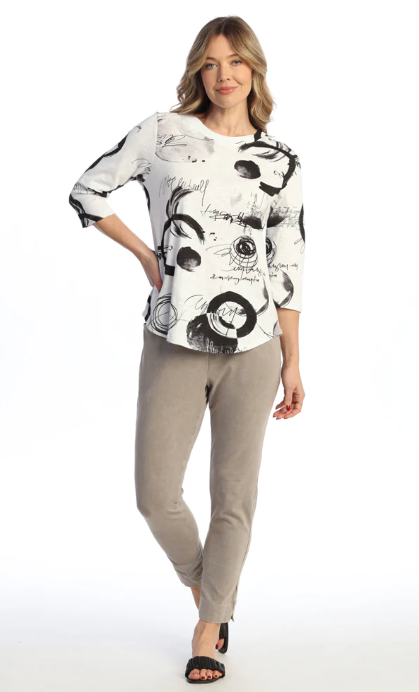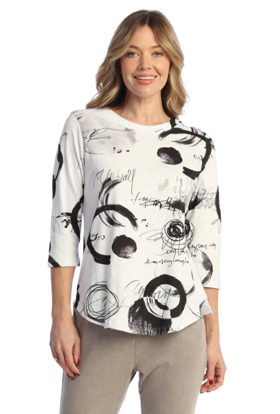 COTTON MODAL ROUND NECK TOP WITH 3/4 SLEEVES