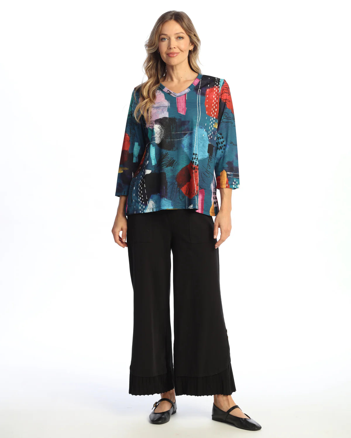 POLY SPANDEX 3/4 SLEEVE V-NECK TOP (PRINT PLACEMENT MAY VARY)