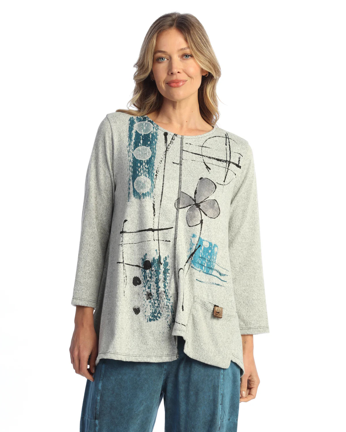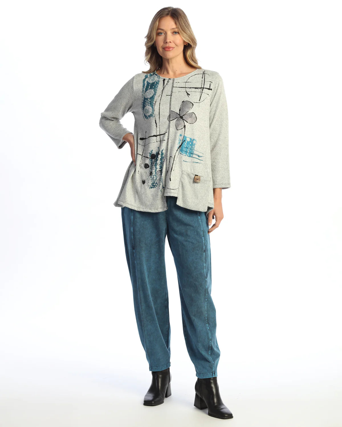 FRENCH BRUSHED KNIT TUNIC TOP WITH PATCH POCKET AND BUTTON (MEDIUM WEIGHT)