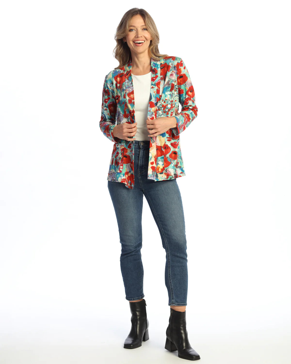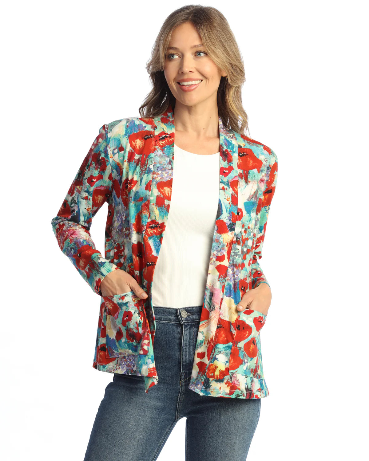 COTTON SPANDEX OPEN CARDIGAN WITH POCKETS (PRINT PLACEMENT MAY VARY)