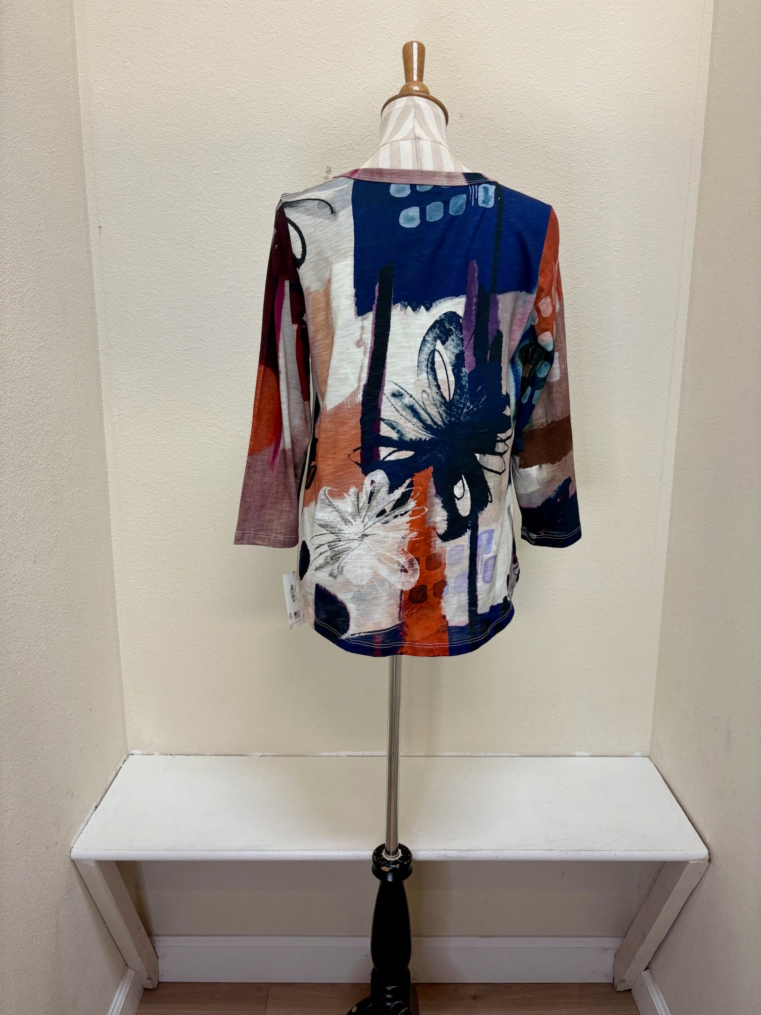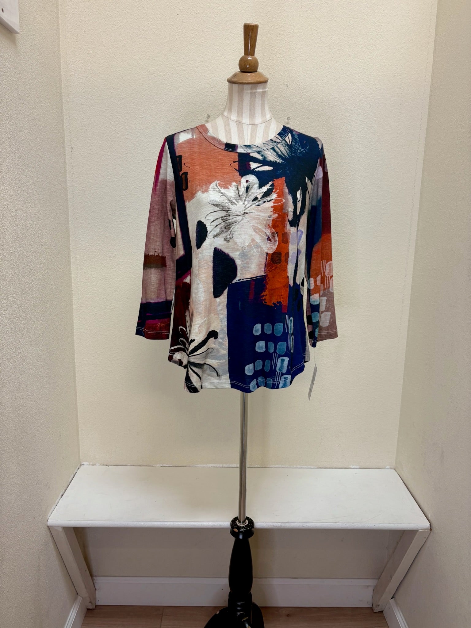 A refined cotton-modal blend crafted with a classic round neckline and elegant three-quarter sleeves. This versatile piece from the Provence collection offers effortless sophistication for any occasion. Please note that print placement may vary slightly from piece to piece, adding to its unique character.