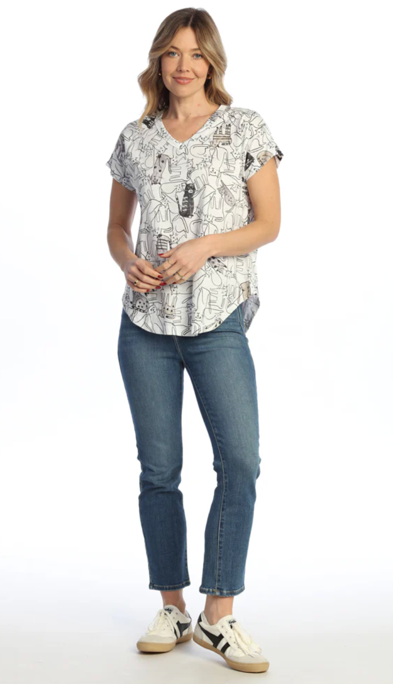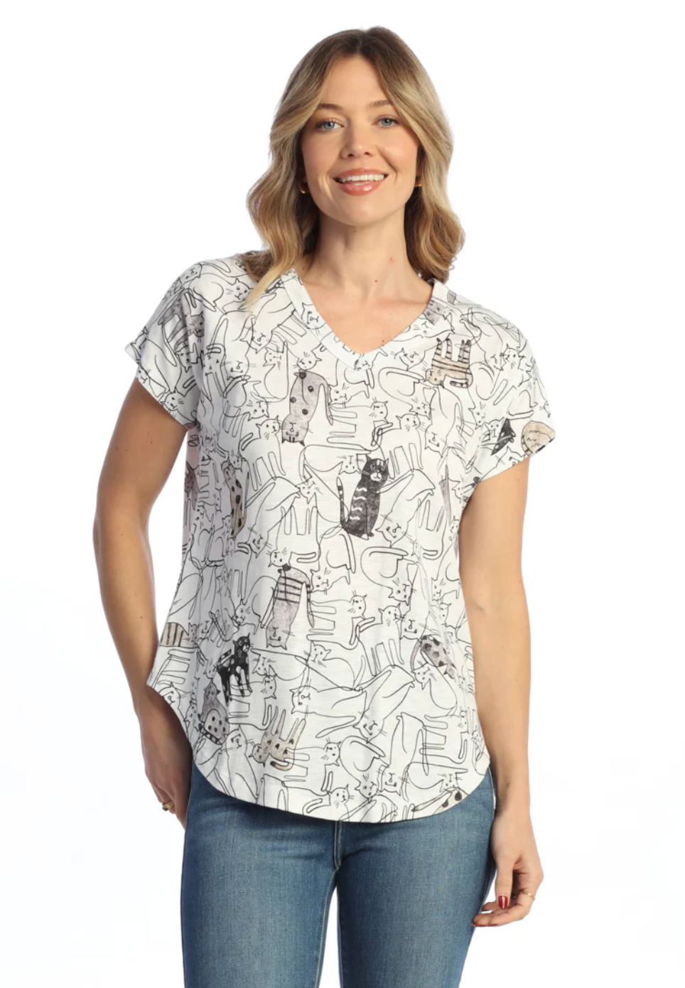 COTTON MODAL EASY FIT SHORT SLEEVE V-NECK TOP