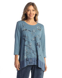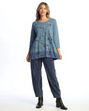 MINERAL WASHED 100% COTTON TUNIC TOP WITH GEORGETTE CONTRAST